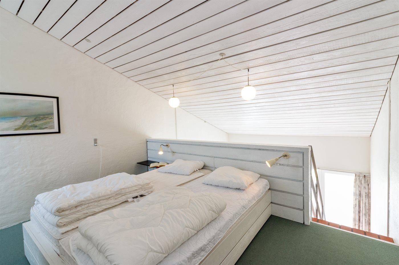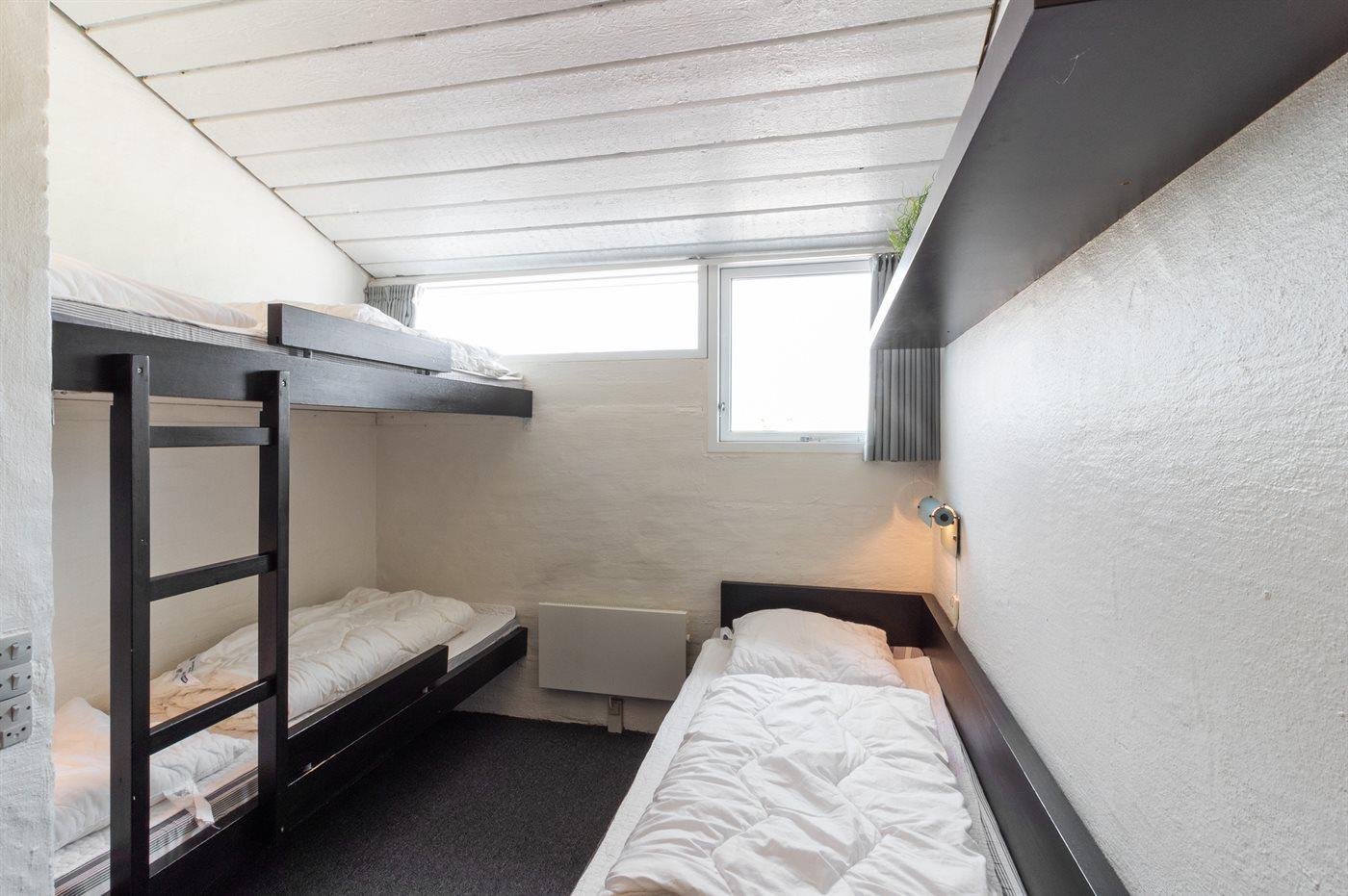 Der er i alt 2 soveværelser. Sovepladserne fordeler sig på: 2 sovepladser i dobbeltseng. 1 soveplads i enkeltseng. 2 sovepladser i køjeseng.