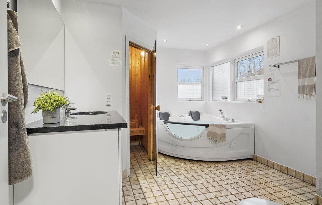 Hyggeligt feriehus i Tranum Klit med spabad, sauna og stor have nær legeplads og aktiviteter for hele familien.
