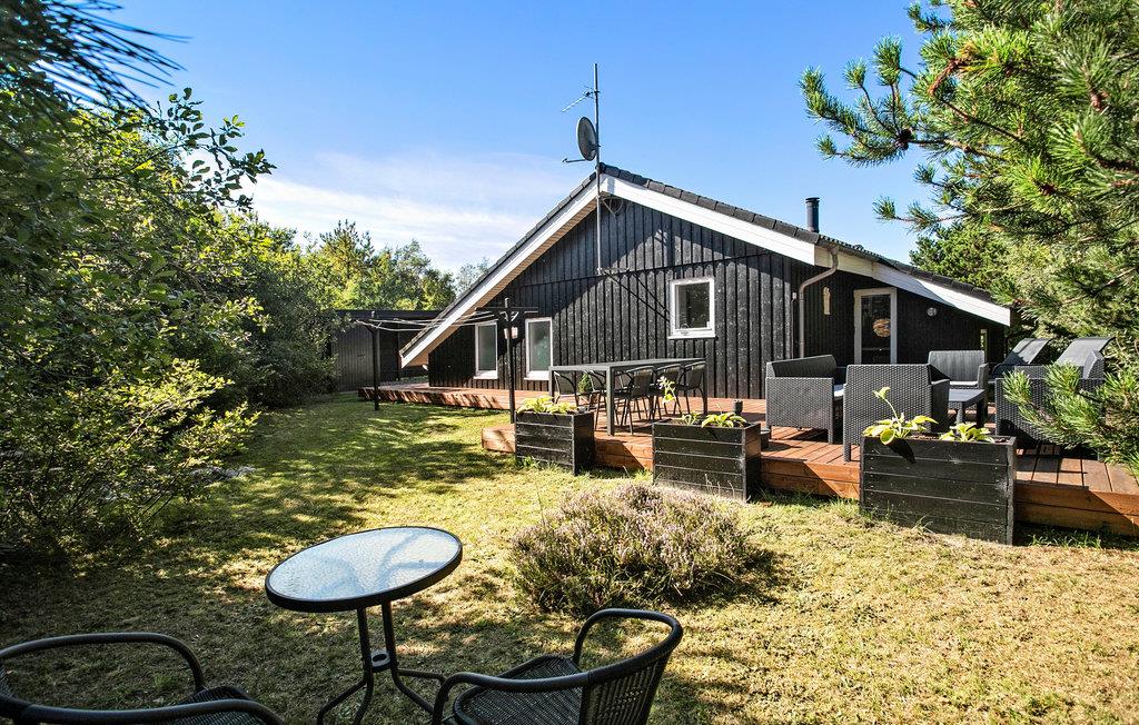 Hyggeligt feriehus nær Tranum Klitplantage med pool, sauna, spabad og dejlig naturgrund.