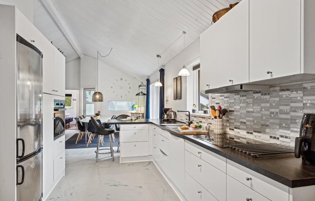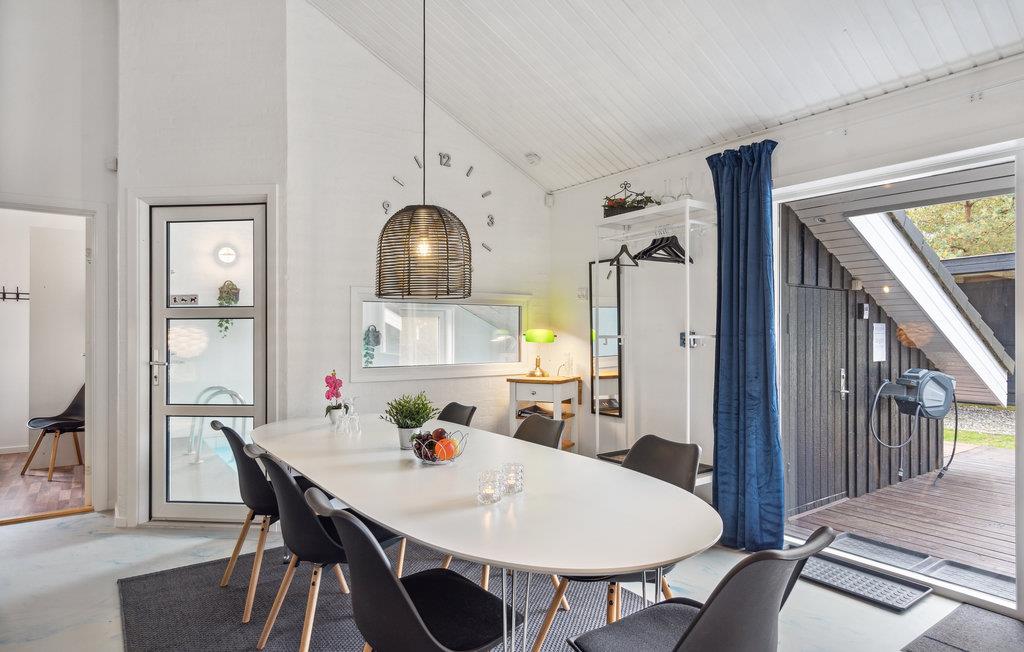 Dette hyggelige feriehus ligger på en naturgrund i nærheden af Tranum Klitplantage, Fosdalen og reservatet Ulvedybet. Her kan I nyde en skøn ferie, hvor I ikke nødvendigvis skal tage til stranden for at bade. Husets dejlige swimmingpool, spabadet og saunaen byder på både aktivitet og afslapning. Her findes desuden fire lyse soverum samt en sovesofa i stuen. Det store køkken/alrum er niveau inddelt hvilket gør, at der er to trin ned til den hyggelige stue. Herfra er der udgang til en dejlig terrasse, hvor kaffen kan nydes ugeneret. I kan også vælge at tage kaffen med på den nærliggende legeplads, hvor der står bord/bænkesæt til fri afbenyttelse.