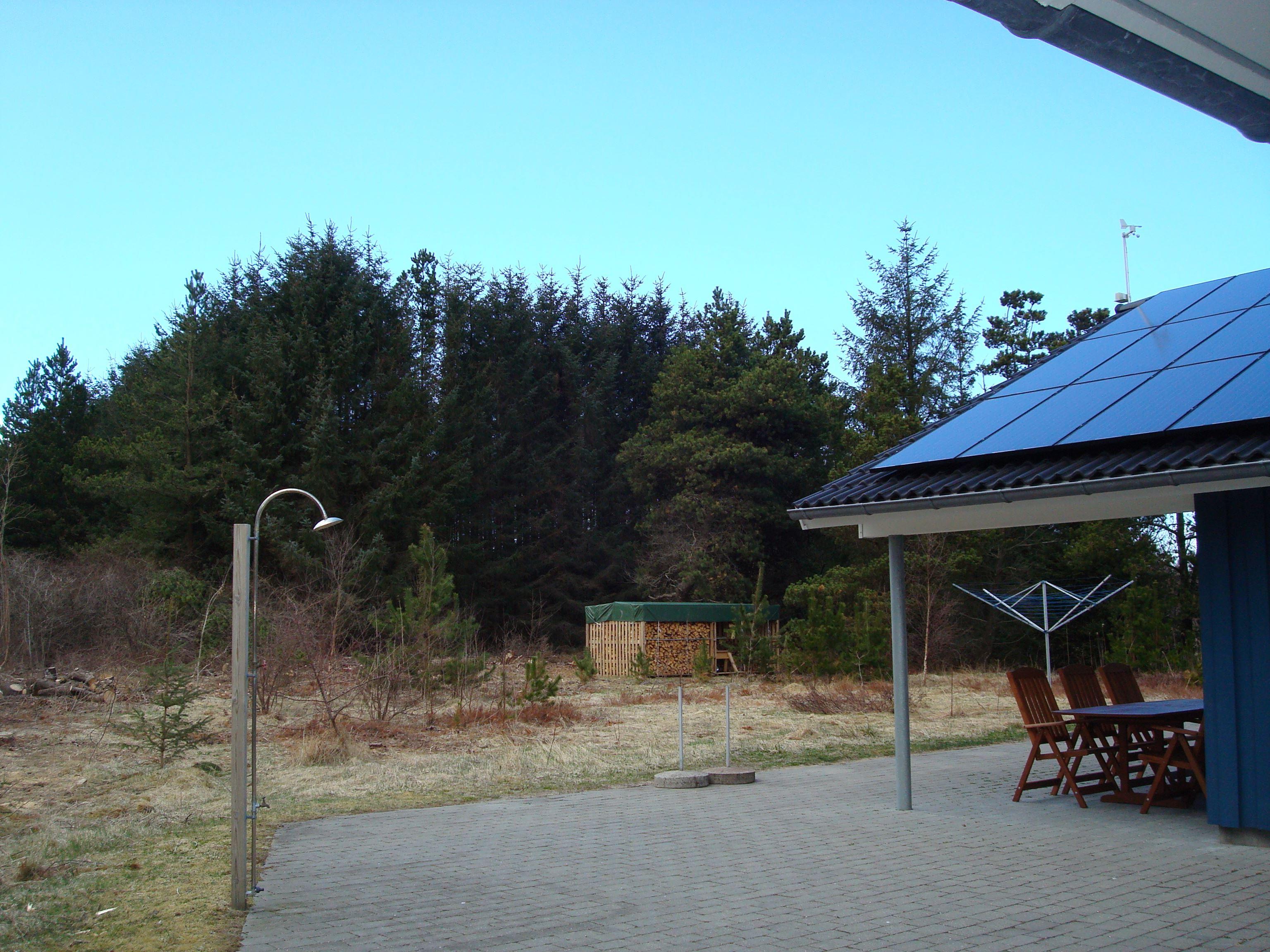 Sommerhuset har 3 dejlige terrasser, - så der vil være god mulighed for at finde en lækrog, hvis det skulle blæse lidt. Foran stuen er den største terrasse, som er overdækket, så den er perfekt til de lange sommeraftener. - til børnene er der både sandkasse og gynge på grunden, samt en lille legeplads på vejen, - så børnene frit kan lege: Derudover er en stor skovlegeplads ved Tranum, - - og kun få kilometer til den fantastiske Tranumstrand.