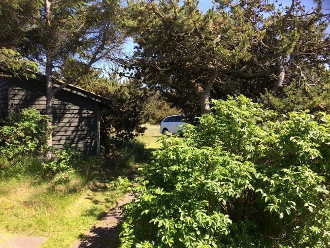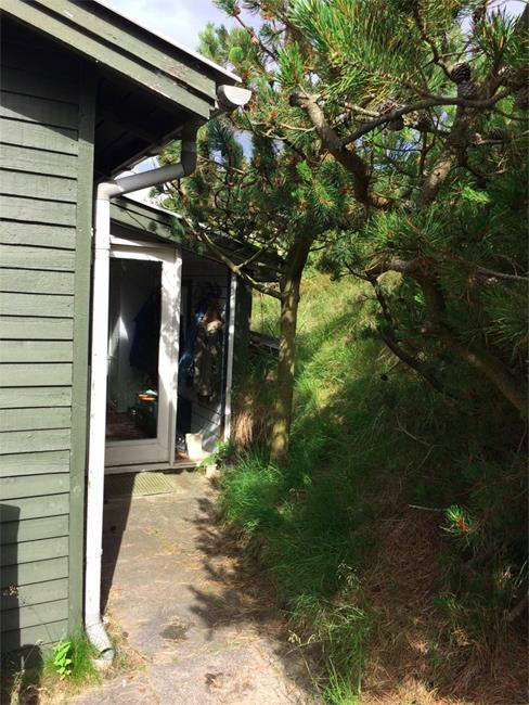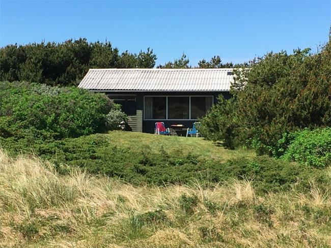 Funktionelt ældre hyggeligt sommerhus. Huset ligger i læ i en klitgryde ugeneret af naboer på 3000 m2 stor naturgrund. Der er 200 m. til Vesterhavet. Pragtfuld udsigt fra stuen til Lien – den gamle kystlinje. Mange sol- og læsteder omkring sommerhuset. Mod vest overdækket terrasse med sol