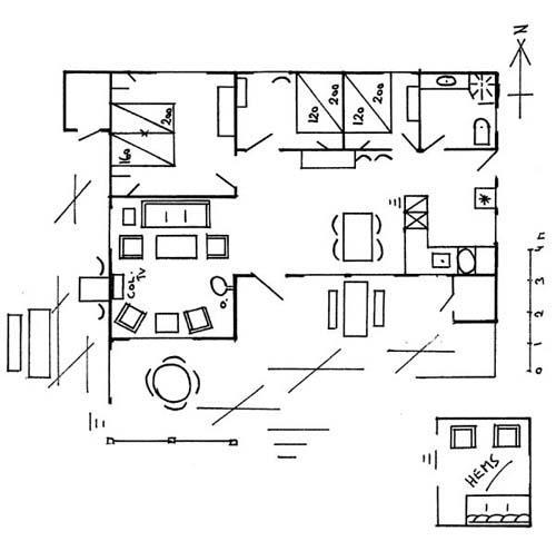 Hyggeligt sommerhus i første række med direkte adgang til stranden. Huset er møbleret i moderne skandinavisk stil med plads til hygge og afslapning. Udenfor er der mulighed for at nyde både morgen-, eftermiddags- og aftensolen på den delvist overdækkede terrasse. Køkkenet er i direkte forbindelse med den lyse opholdsstue. Her er TV, hyggeligt sofahjørne og en rummelig spisekrog med plads til 6 personer. Huset har i alt tre soveværelser: et værelse med dobbeltseng og to værelser med køjesenge. Køjeseng i begge værelser er 120 x 200 i nederste køje og øverste 70 x 200.