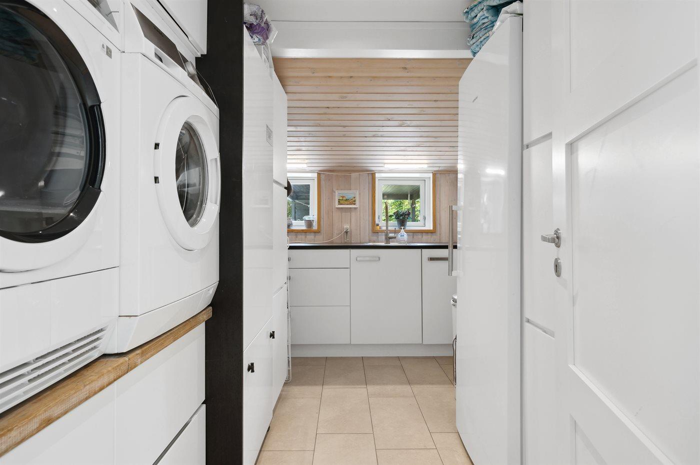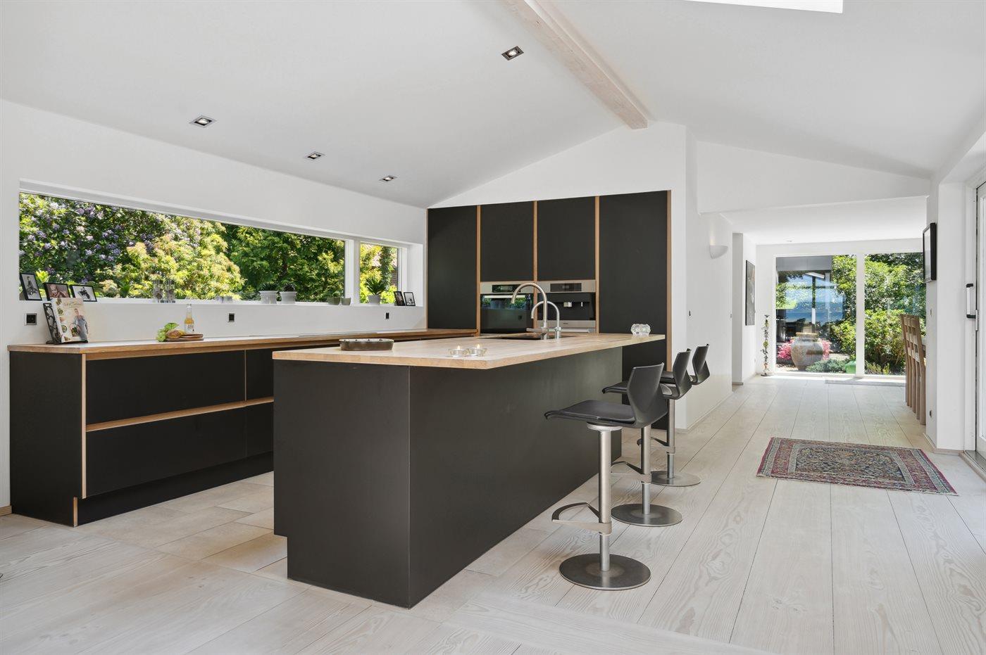 Køkkenet er udstyret med 1 køleskab. Der er 4 induktionskogeplader, varmluftovn, mikrobølgeovn samt opvaskemaskine.