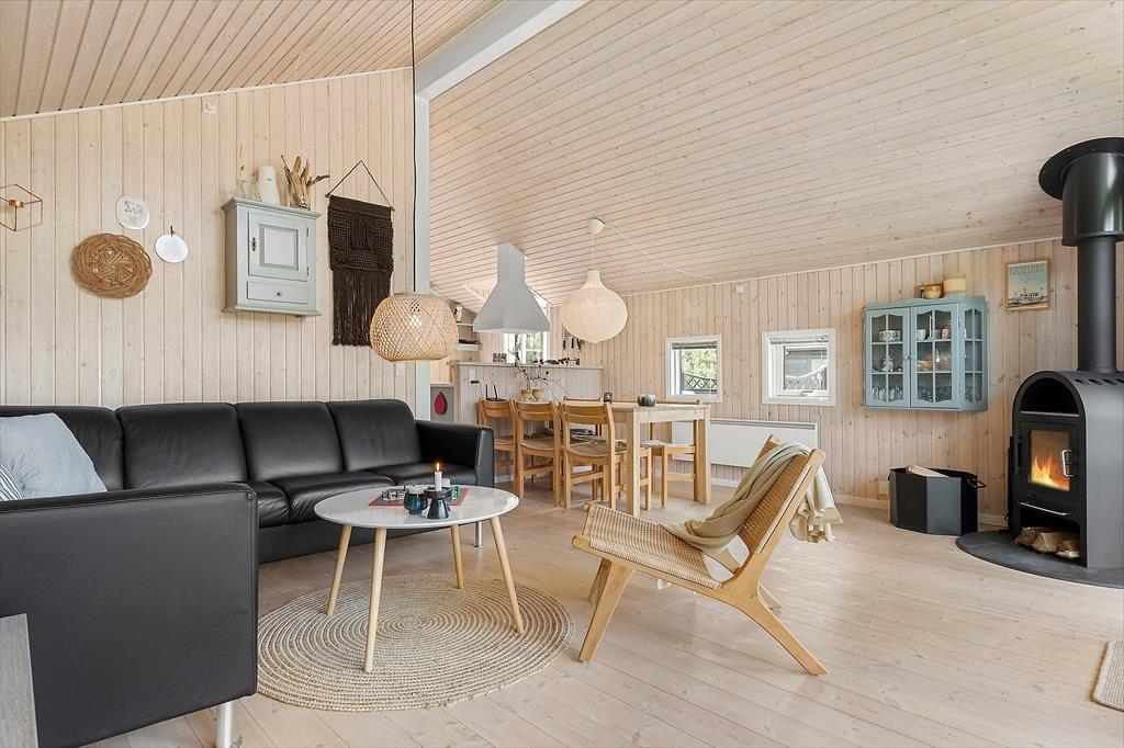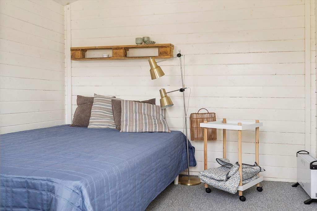 Huset er opført i 2005 og måler 63 m2, og det har følgeskab af et anneks på 8 m2. Er I fem personer, kan I fint være her alle sammen, for der er to gode soveværelser og en alkove i selve sommerhuset, og derudover kan anneksets dobbeltseng tages i brug. Et badeværelse med bruser hører med til sommerhusets planløsning – foruden køkken og stue, der tilsammen udgør et skønt opholdsrum. Med loft til kip, brændeovn og den fornævnte alkove emmer opholdsrummet af hygge og charme, og det er nemt at forestille sig, at en stor del af ferien kommer til at foregå her. Trænger I til underholdning, har I mulighed for at streame film og serier på fladskærms-tv’et, og der er også wi-fi-forbindelse i huset, hvis I vil følge med i nyhedsstrømmen eller surfe på nettet.
