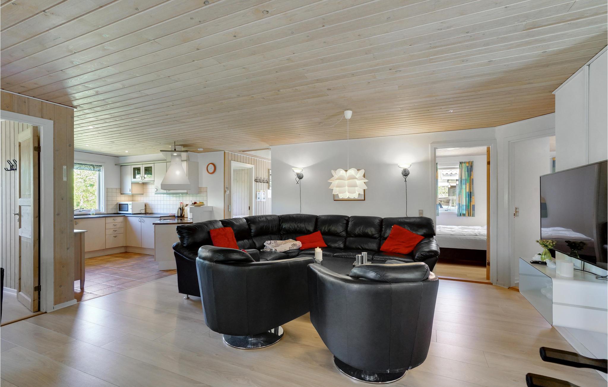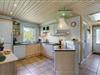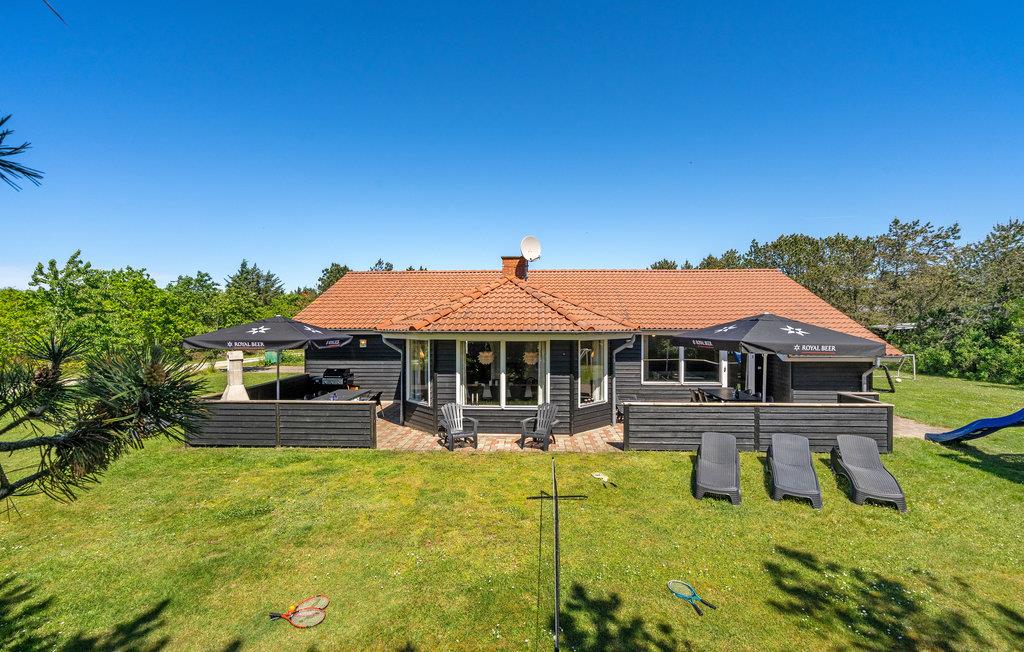 På en kuperet og dejlig naturgrund ligger dette attraktive feriehus med swimmingpool. Det er hyggeligt og pænt indrettet overalt. I opholdsstuen, der ligger i forlængelse af køkkenet, kan I hygge jer foran brændeovnen i det komfortable sofahjørne og evt. tage et spil kort, eller se hvem der er bedst til bordfodbold. Spisestuen ligger i tilknytning til stuen, og her kan I ligeledes nyde varmen fra brændeovnen, der er smart placeret i muren mellem de to rum. Det store swimmingpoolrum byder velkommen til mange timers sjov og leg i poolen, hvor I ligeledes kan få dejlig undervandsmassage i spabadet eller gå en tur i sauna. Huset er omgivet af store terrasser med havemøbler og liggestole, hvor I kan nyde de skønne sommerdage og -aftener. Tænd op i grillen og lav lækre feriemåltider mens børnene leger i sandkassen, på gyngerne eller rutsjebanen.