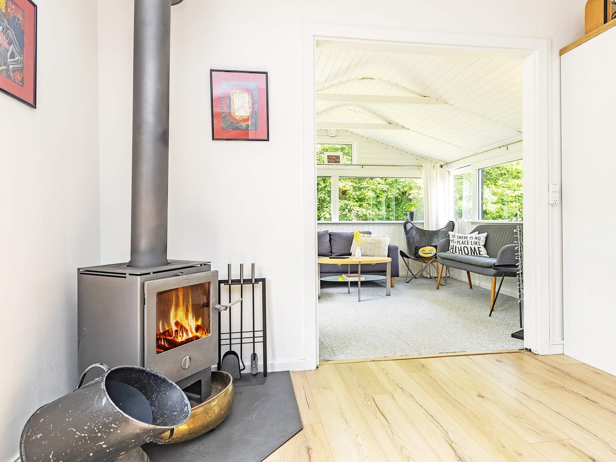 Køkkenet er veludstyret med keramisk kogeplade, ovn, mikroovn, køleskab/fryser og opvaskemaskine. Ejendommen byder på to udendørs terrasser: en tilgængelig fra stuen med pejs, med havemøbler til spisning eller afslapning, og en anden terrasse fra spisepladsen med udsigt over haven. Beliggenheden kombinerer ro, moderne komfort og bekvem adgang til naturlige omgivelser, hvilket gør dette feriehus til et fremragende valg for en afslappende og mindeværdig ferie.