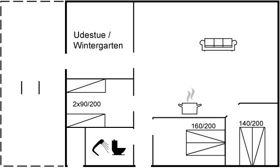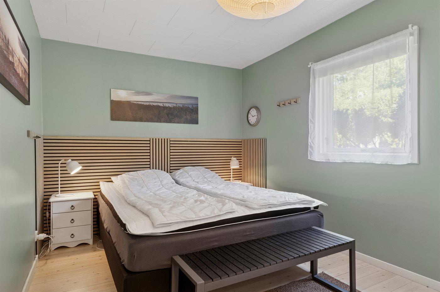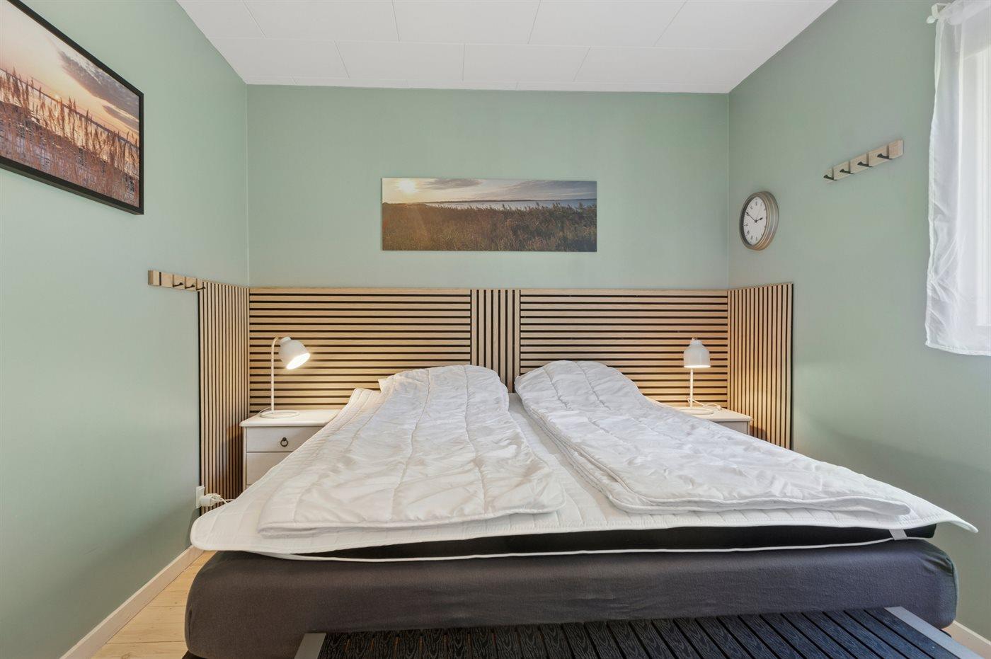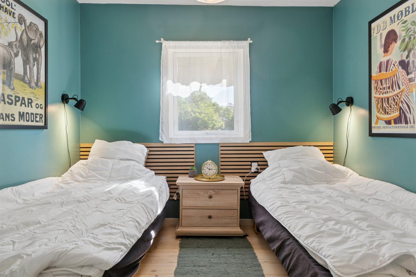 Der er i alt 3 soveværelser. Sovepladserne fordeler sig på: 4 sovepladser i dobbeltsenge. 2 sovepladser i enkeltsenge. Derudover er der 1 stk. barneseng.