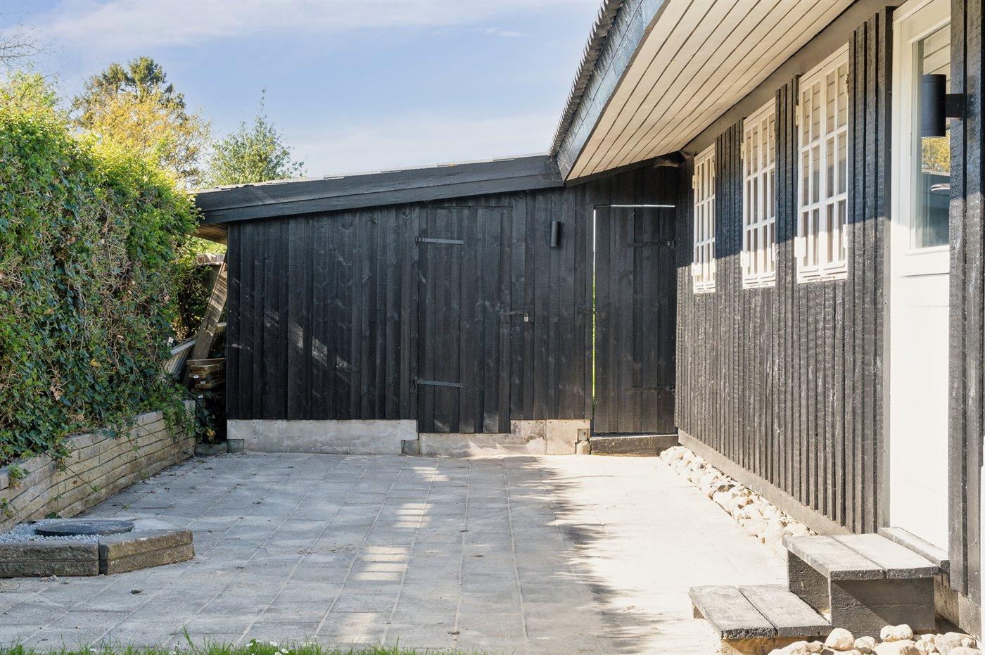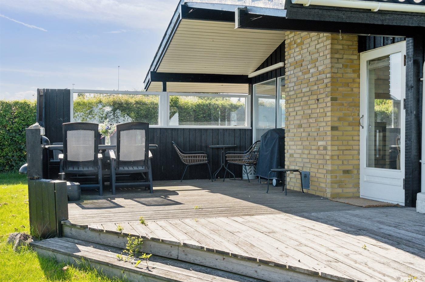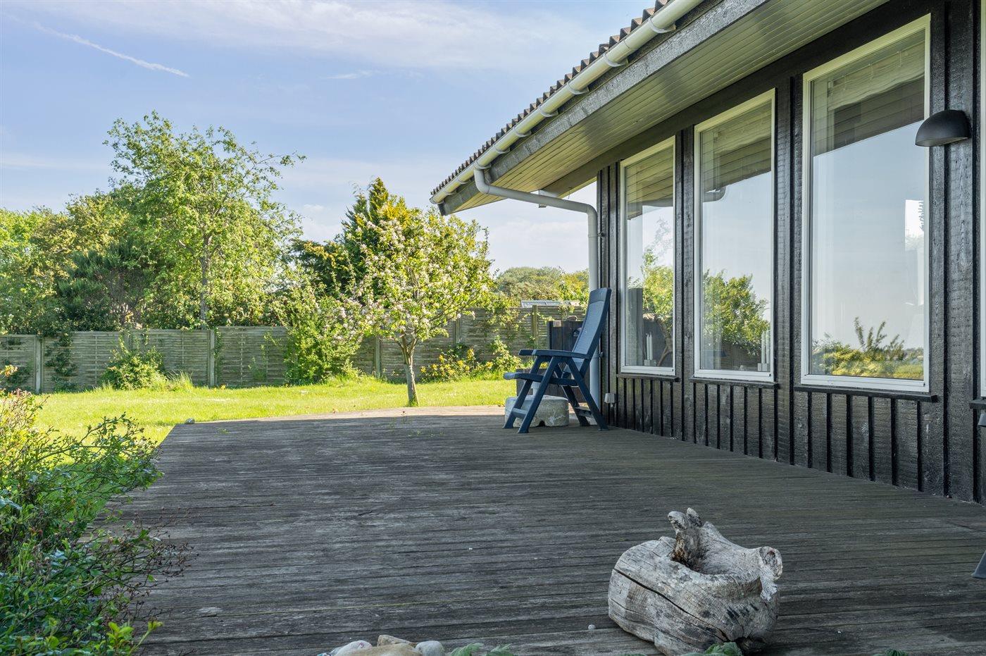 Den store grund går helt ned til vandkanten og via egen trappe er der mulighed for at komme ned på stranden. På de store terrasseområder er der mulighed for at nyde solen og det gode vejr.