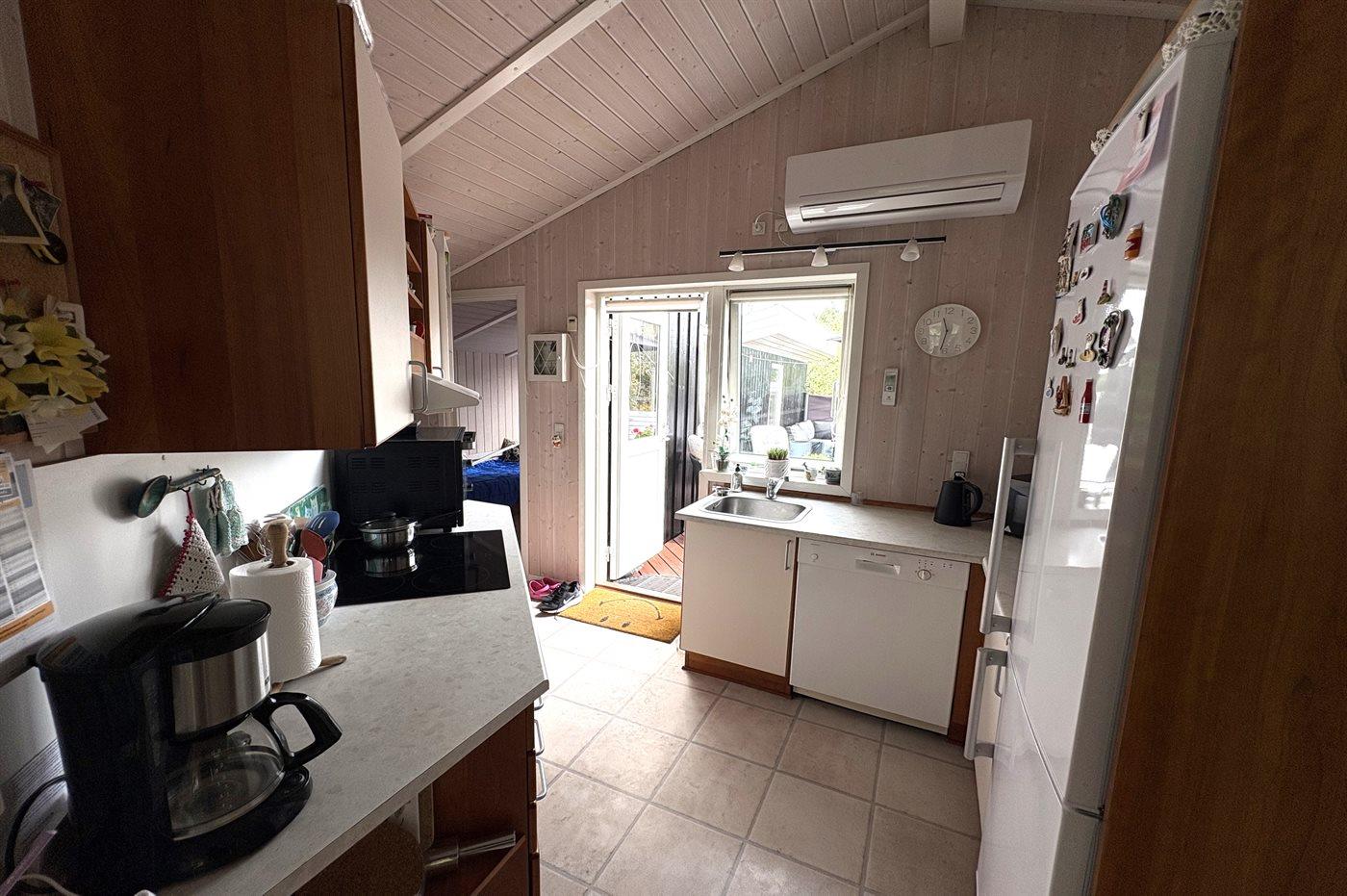 Ferieboligen er beliggende på en 916 m² stor havegrund. Der er 175 m til fjorden. Der er en badebro i nærheden. Nærmeste forretning er beliggende i en afstand af 415 m. Der er en golfbane i en afstand af 19500 m. Til ferieboligen hører 55 m² terrasseareal. Desuden er der 7 m² overdækket terrasse. Grill til rådighed. Parkering ved ferieboligen.
