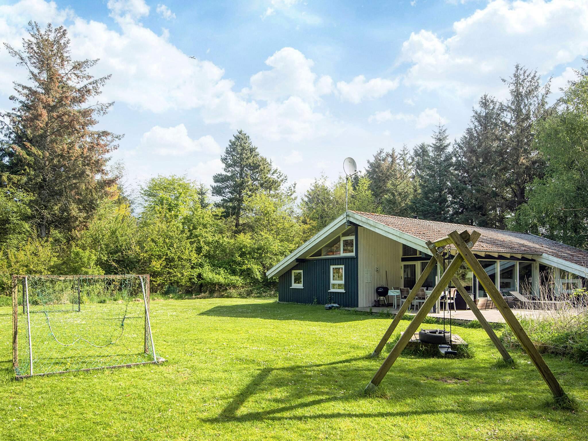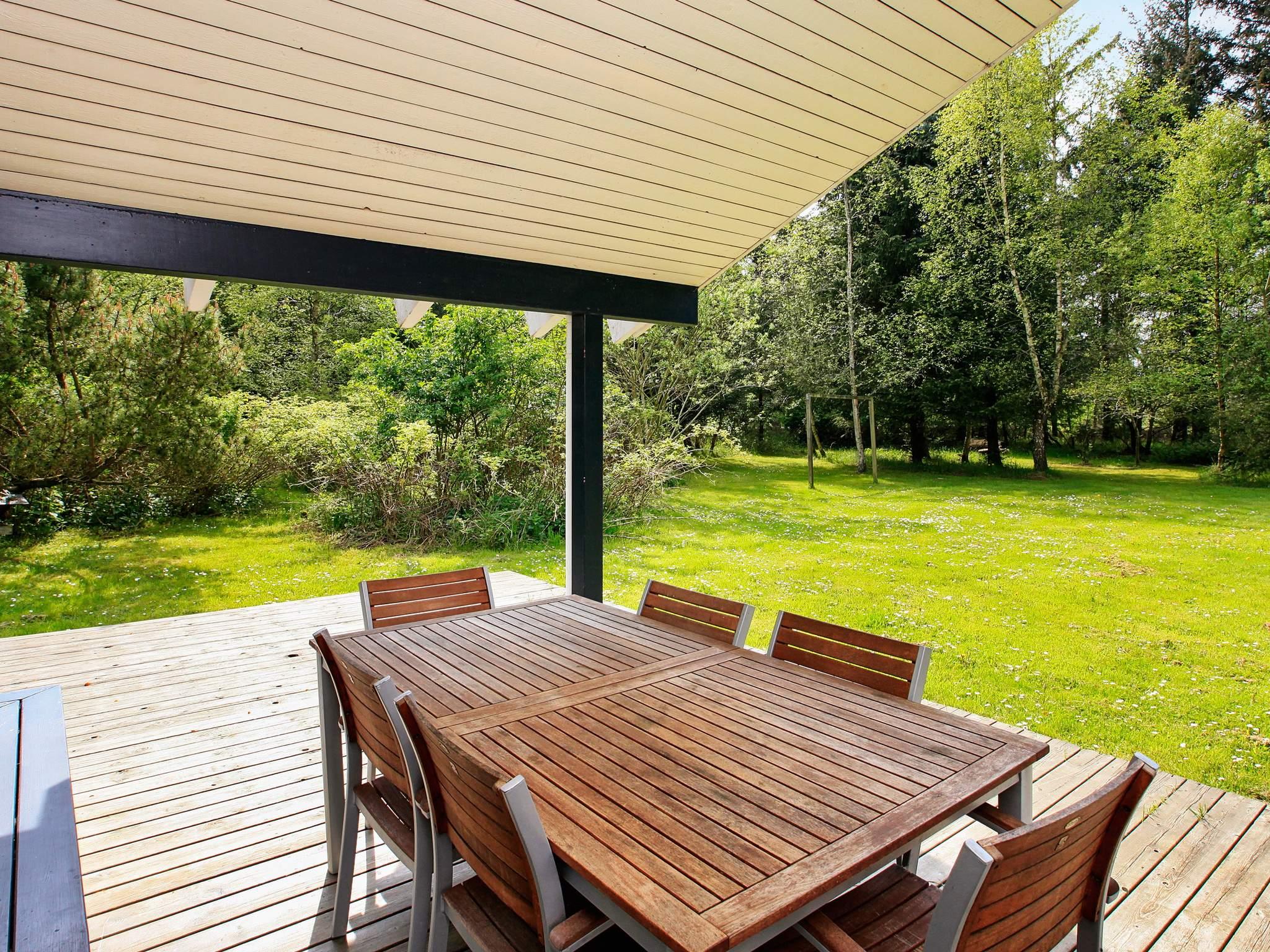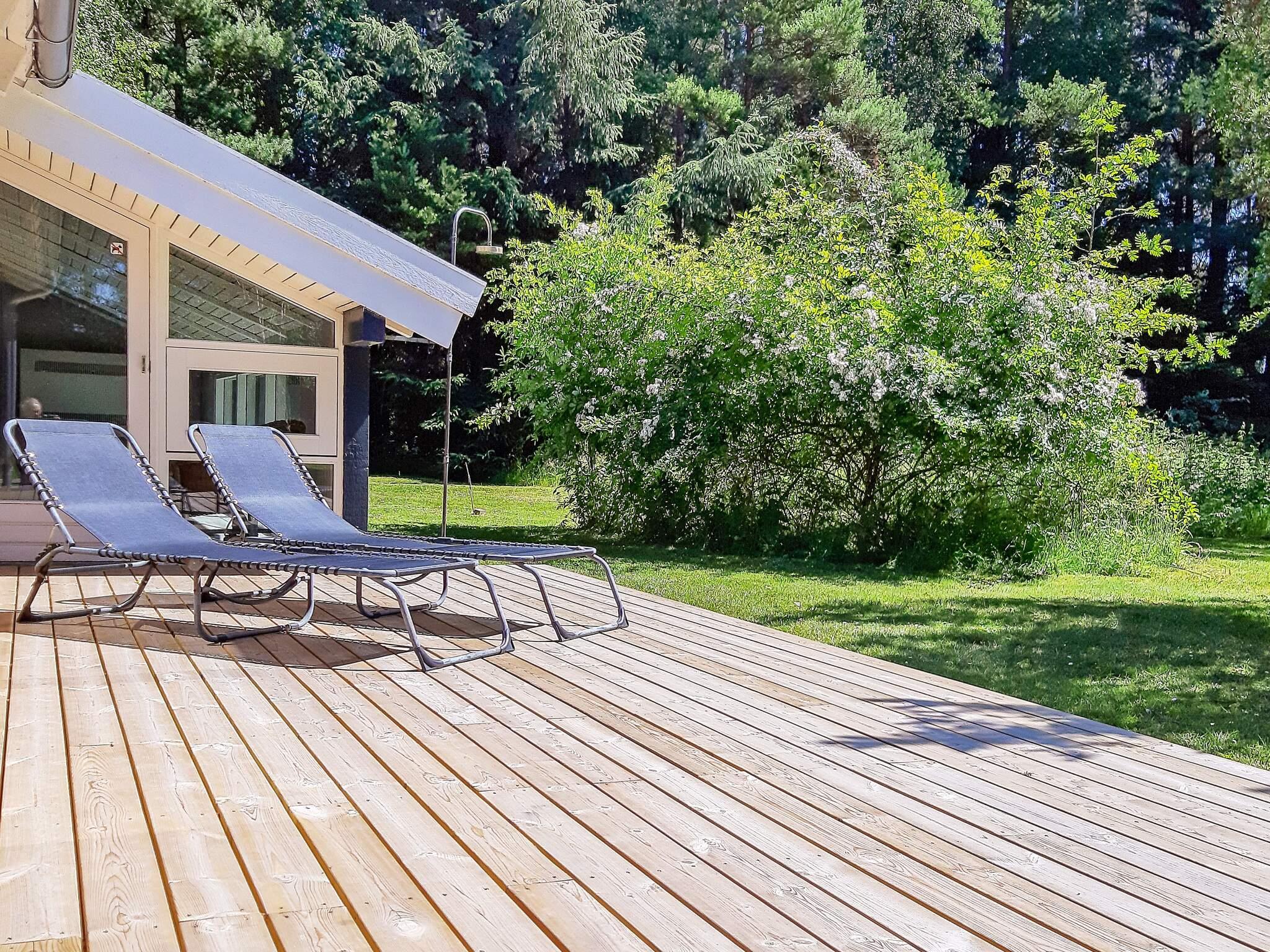 På den dejlig naturgrund med plæne til boldspil med fodboldmål og gode legemuligheder med sandkasse og gynge, eller hygge omkring bålplads med snobrød. Udendørs bruser til de friske. Mod øst ligger en lille terrasse, hvor det er skønt at nyde morgenkaffen, og i det nordvestlige hjørne, med udgang fra stuen, ligger en større terrasse, hvorfra I har overblik over det meste af grunden. Her er en lille overdækket del, som er god om aftenen, når duggen falder på.