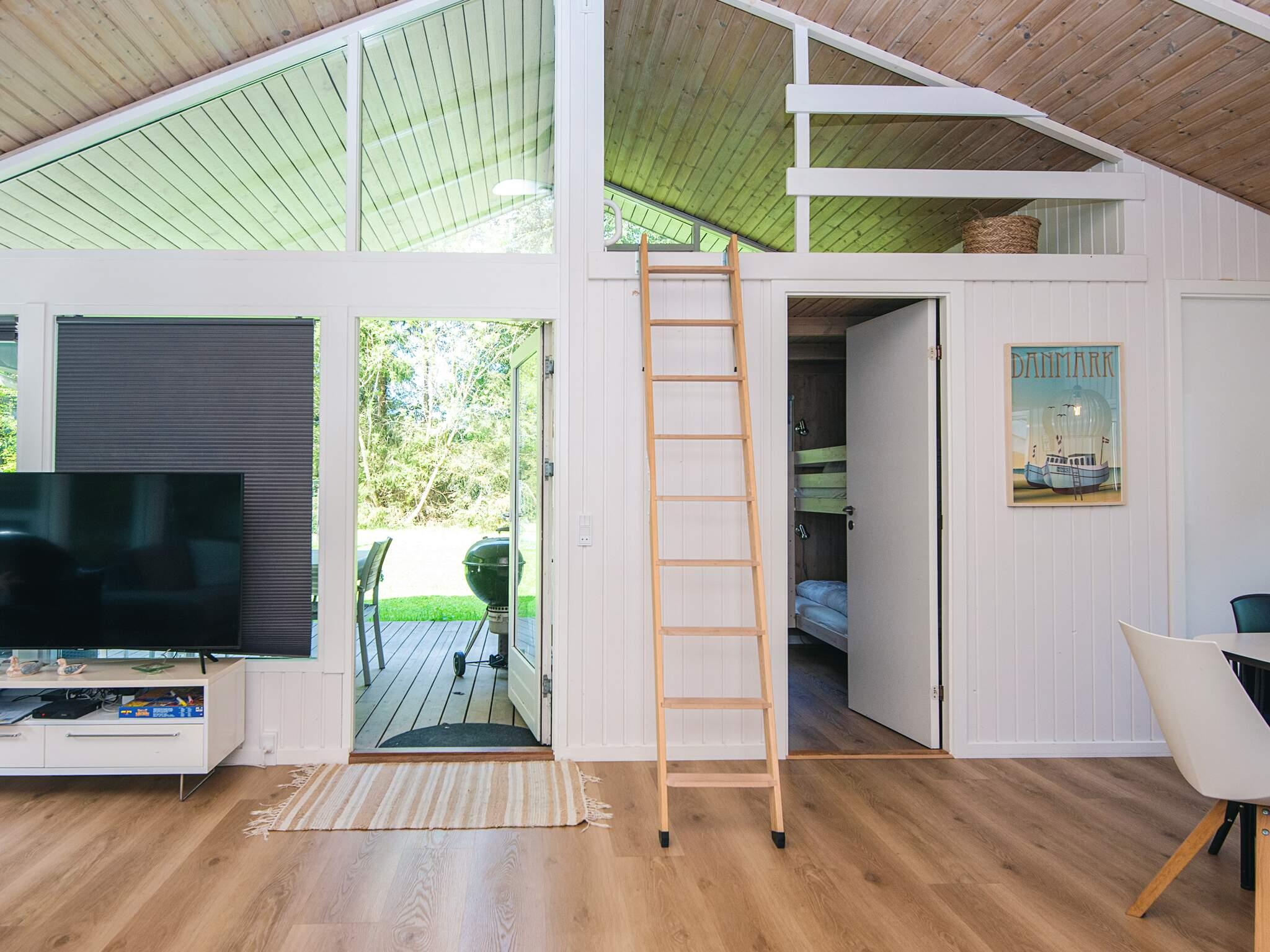1 Opholdsstue: Brændeovn, Chromecast, tv, høj stol