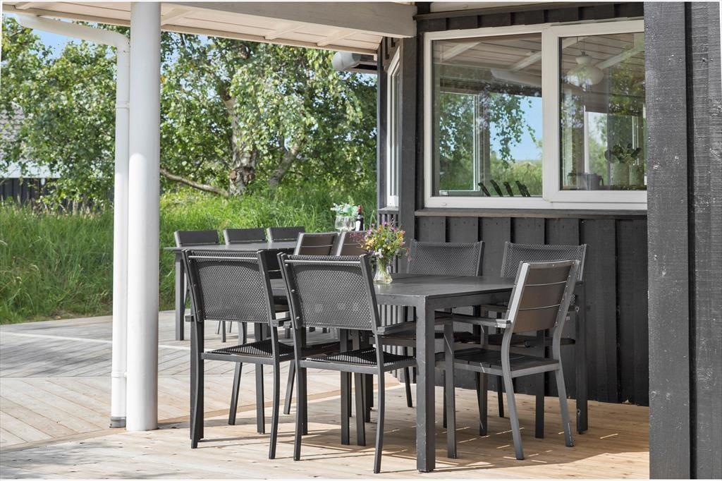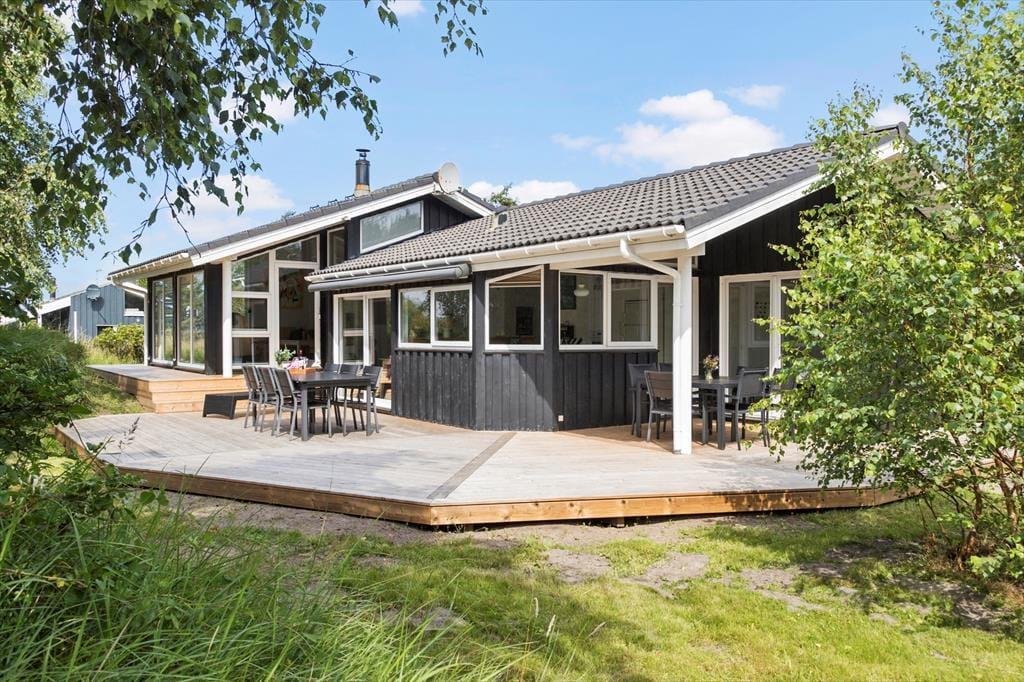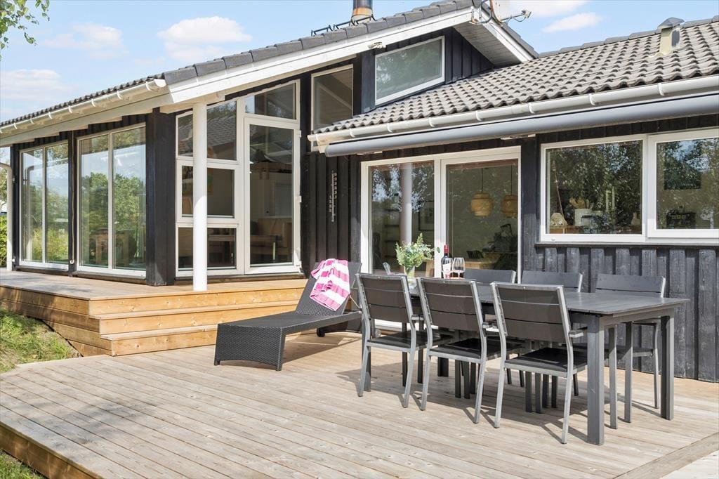 Sommerhuset ligger på en rummelig grund med masser af plads til at nyde de naturskønne omgivelser. Den store terrasse indbyder til hyggelige stunder under åben himmel – fra morgenkaffe i solen til lækre grillmiddage, mens aftenen falder på. Haven er en oase af ro og plads, hvor børn kan lege frit, og de voksne kan finde en fredelig krog til at læse en bog eller bare nyde fuglesangen. De omkransende træer giver en følelse af privatliv og harmoni, og her kan du virkelig koble af og lade naturen omfavne dig.