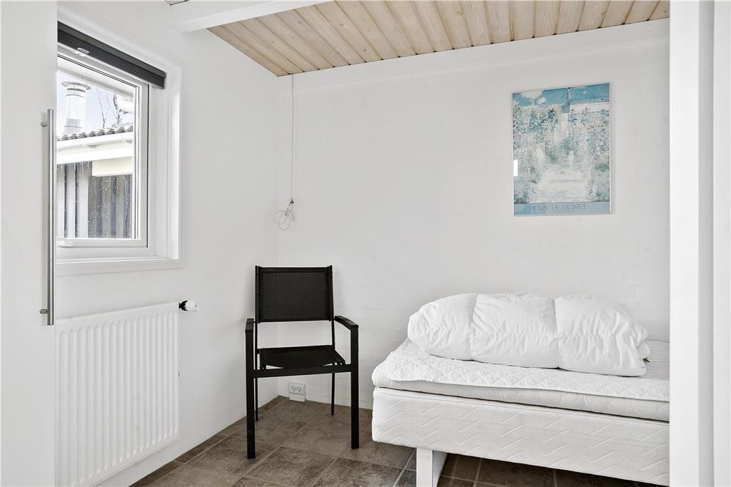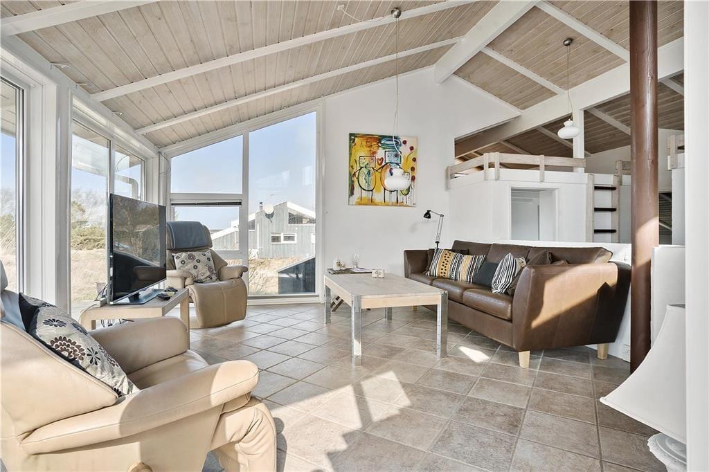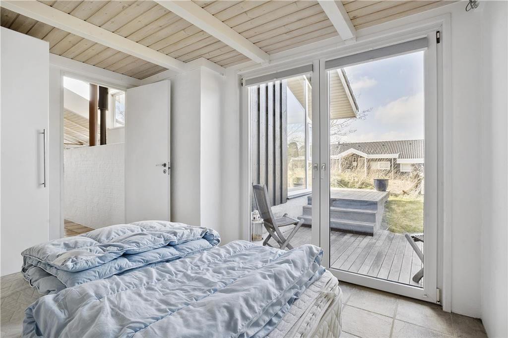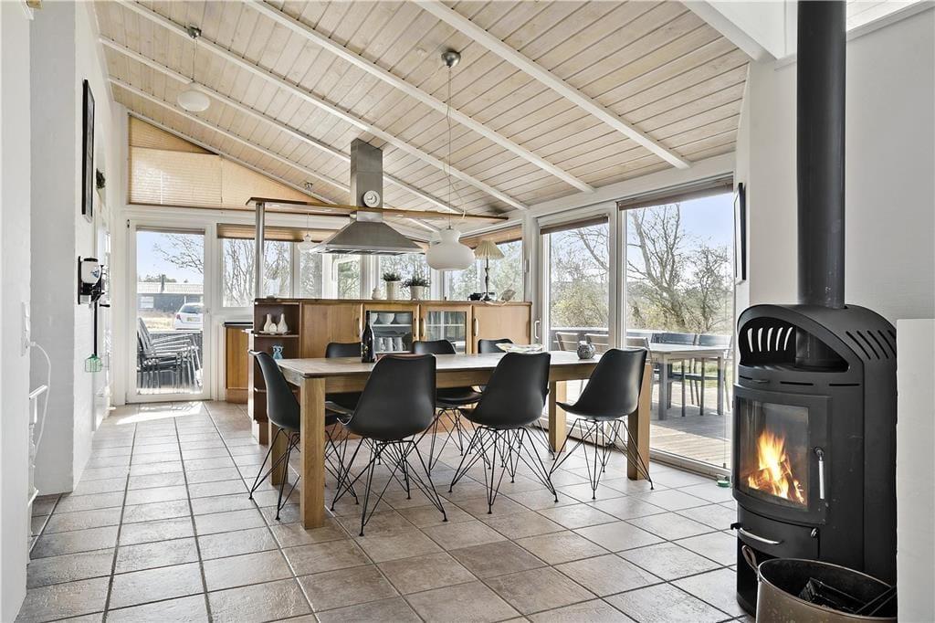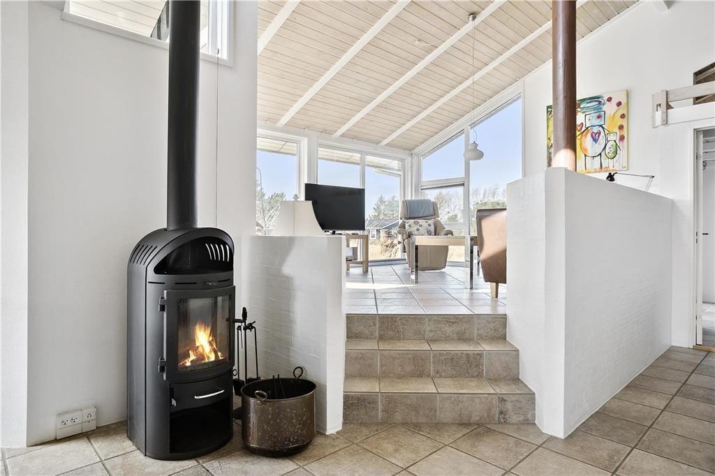 Indenfor mødes du af en lys og venlig atmosfære, der straks skaber en følelse af velvære. Stuen er indrettet med store vinduespartier, som lader lyset strømme ind og skaber en fornemmelse af luft og rummelighed. Her kan du slappe af i sofaen foran brændeovnen eller nyde udsigten til haven. Det åbne køkken ligger i direkte forbindelse med stuen, hvilket gør det nemt at samles om måltiderne og dele de gode ferieoplevelser. De tre soveværelser er hyggelige og komfortable, perfekte til afslapning efter en dag fuld af oplevelser. Badeværelset er moderne og praktisk indrettet, så både store og små kan starte dagen på bedste vis.