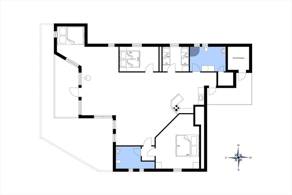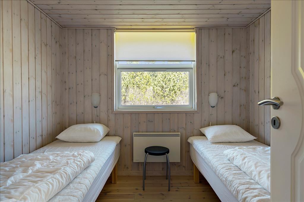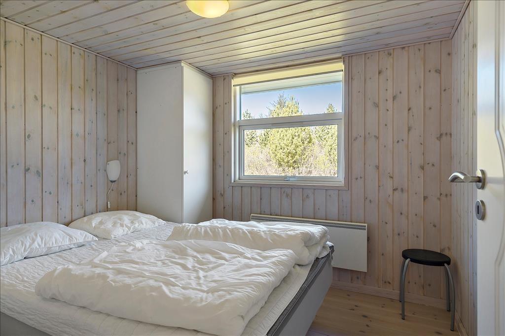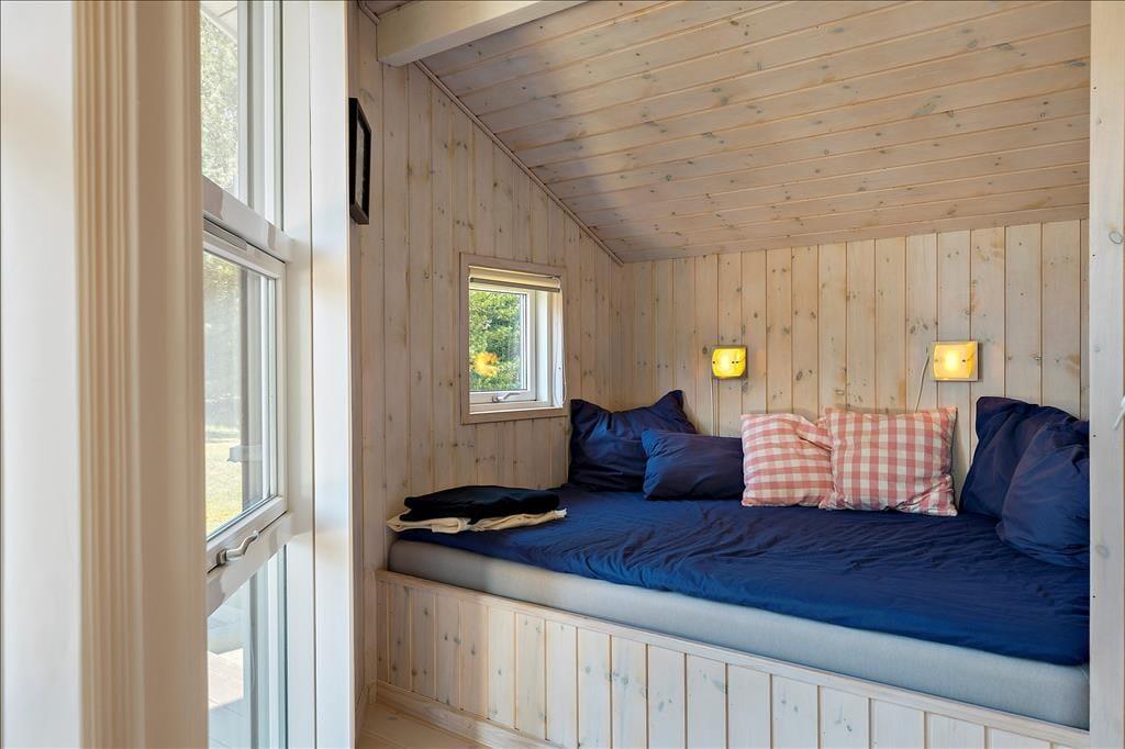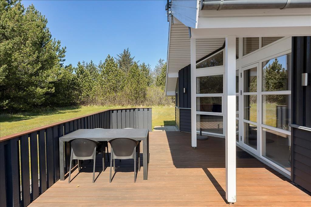 Indenfor bliver du mødt af en lys og indbydende indretning, hvor store vinduer lader solen strømme ind og skaber en følelse af rummelighed og nærvær med naturen udenfor. Opholdsstuen er hjertet i huset, hvor familien kan samles omkring spisebordet eller slappe af i de komfortable møbler med udsigt til haven. Køkkenet ligger i åben forbindelse med stuen, hvilket gør det let at være sammen, mens maden tilberedes. Her er rummet designet til hygge og fællesskab, perfekt til både afslapning og feriesamvær.