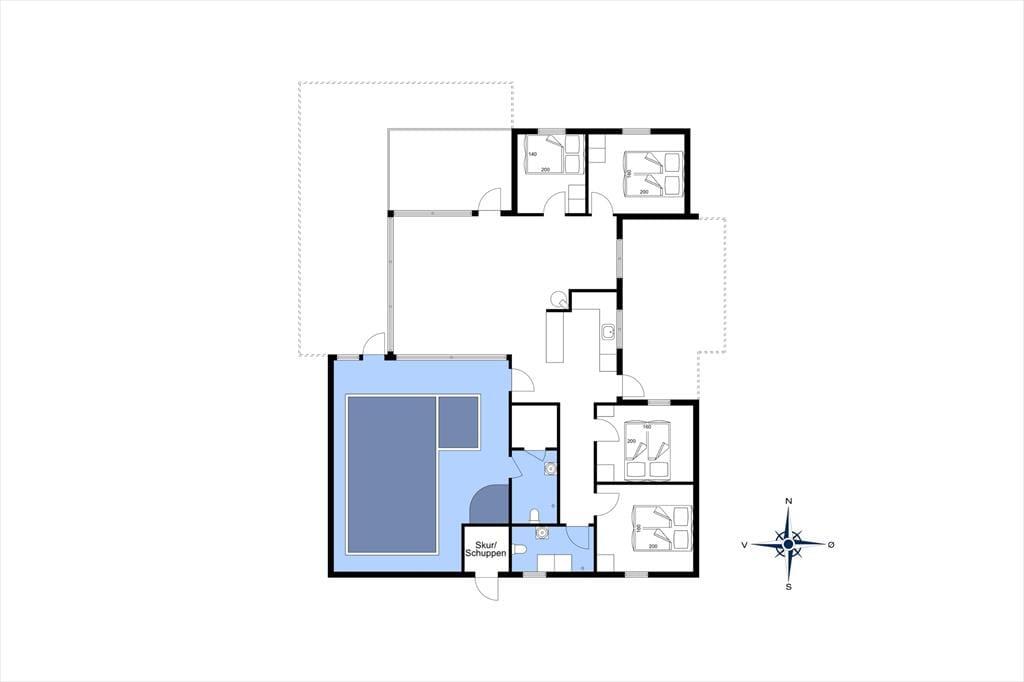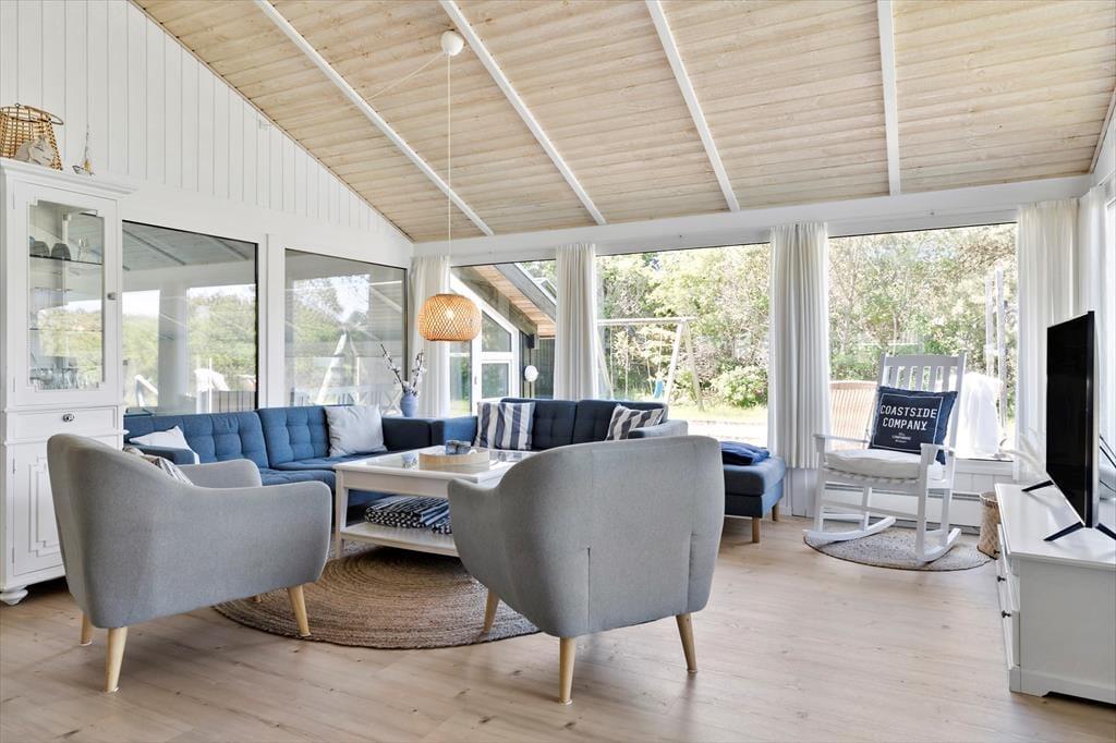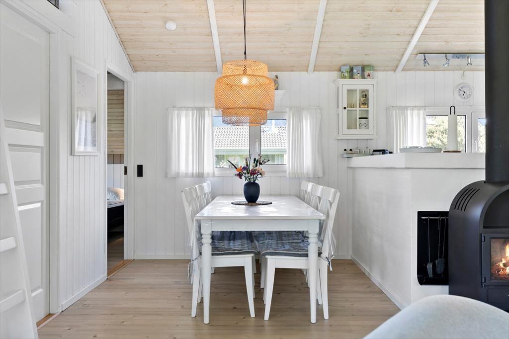Indenfor byder sommerhuset på en varm og indbydende atmosfære, hvor det er nemt at føle sig hjemme. Stuen har plads til både afslapning og samvær – uanset om du foretrækker en stille stund med en god bog eller en aften med brætspil og hygge. Det åbne køkken er praktisk indrettet og ligger i forbindelse med spiseområdet, så hele familien kan være samlet, mens maden tilberedes. Poolområdet er husets hjerte – et skønt sted, hvor du kan starte dagen med en dukkert eller slutte af med lidt sjov og afslapning.