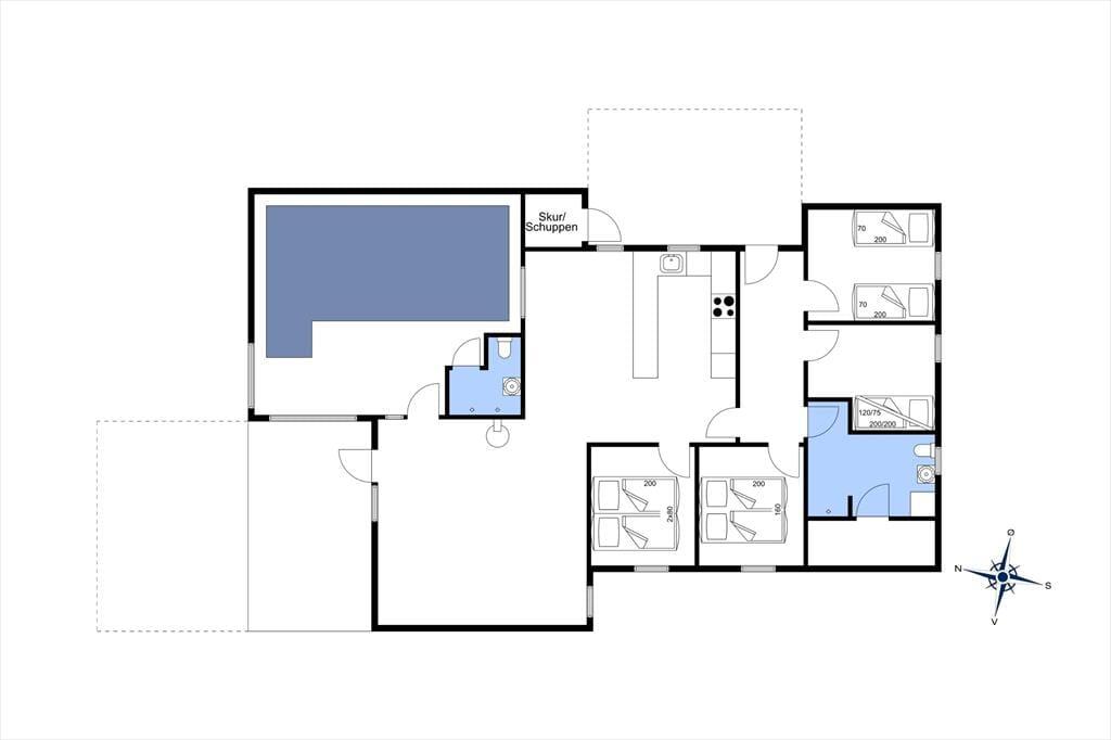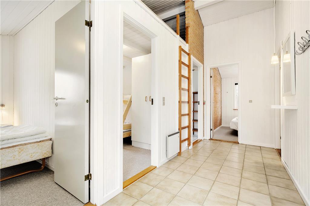 Indenfor bliver du mødt af en lys og rummelig indretning, der straks skaber en behagelig atmosfære. Hjertet i huset er det indbydende poolområde, hvor både store og små kan få mange timer til at gå med sjov og leg. Den kombinerede stue og spiseafdeling byder på komfortable møbler og store vinduespartier, der lader lyset strømme ind og giver udsigt til de grønne omgivelser. Køkkenet ligger i åben forbindelse med stuen og er perfekt til hyggeligt samvær, mens maden forberedes. Husets soveværelser er rolige og indrettet med fokus på komfort, så alle kan få en god nattesøvn.