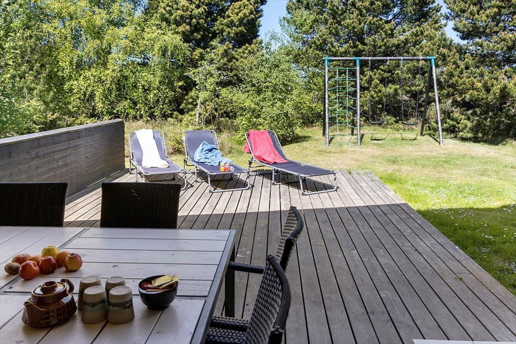 Udenfor finder du et herligt terrassemiljø, der er ideelt til afslapning og gode stunder i det fri. Med havemøbler og grill er det nemt at arrangere lækre måltider og nyde de lange sommeraftener under åben himmel. Børnene vil elske at lege på græsplænen, mens de voksne kan slappe af i solen eller nyde en kop kaffe i de rolige omgivelser. Huset er omkranset af skøn natur, og de udendørs arealer inviterer til afslapning og hyggelige aktiviteter for hele familien.