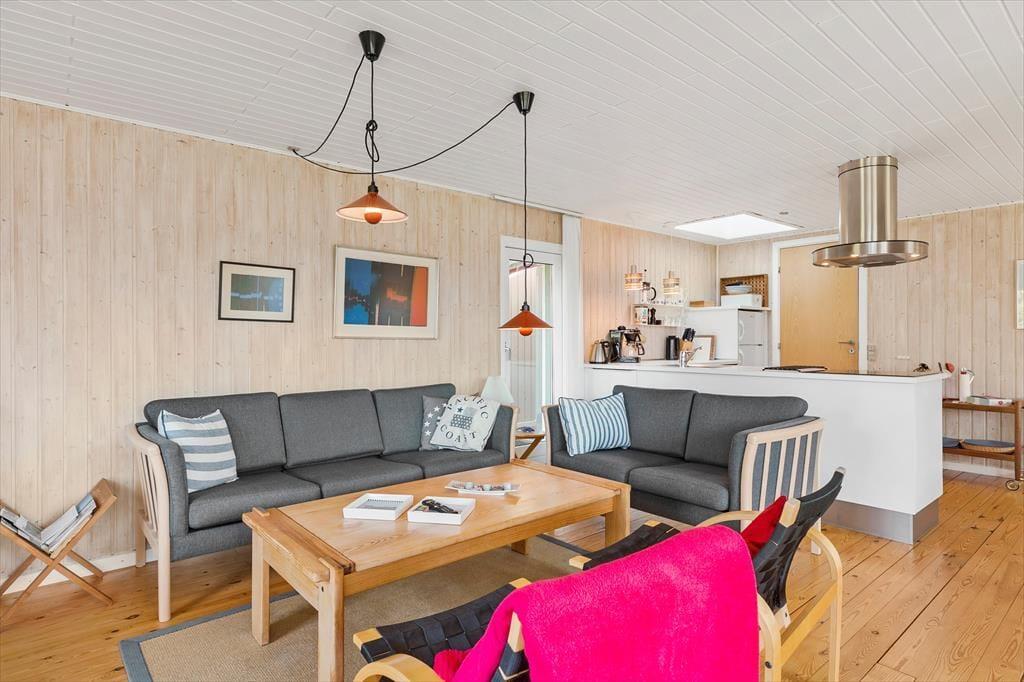 Indenfor mødes du af en lys og hyggelig indretning, hvor alt er gennemtænkt for at skabe en hjemlig og afslappende atmosfære. Stuen danner ramme om både afslappede stunder og fællesskab med familie og venner. Her kan I slænge jer i sofaen, nyde en god bog eller samle jer om en film på fjernsynet. Det åbne køkken gør det nemt at forberede lækre måltider og samtidig være en del af samtalerne omkring spisebordet. Soveværelserne er indrettet med fokus på komfort, så I kan vågne veludhvilede og klar til en ny dag fyldt med oplevelser.