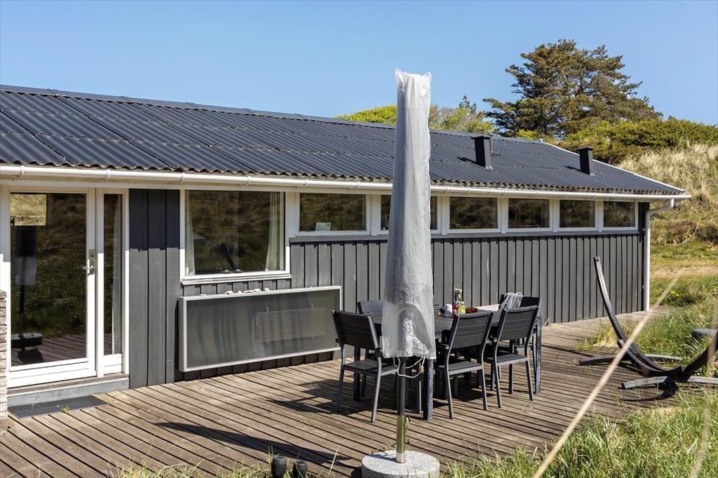 Sommerhusets ugenert terrasse er et fantastisk sted at nyde dagens måltider, lade børnene lege frit eller blot slappe af i en liggestol med en god bog. Terrassen omkranses af den frodige naturgrund, som giver en skøn fornemmelse af privatliv. Her kan du lade dig opsluge af fuglesangen og den friske havluft, mens solen bevæger sig hen over himlen. Hvis du er mere til aktive oplevelser, er der rig mulighed for at udforske de nærliggende skovområder og stier.