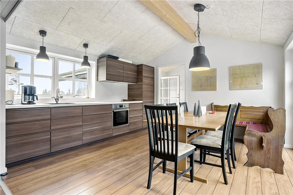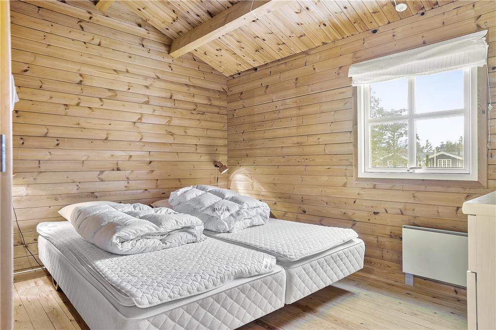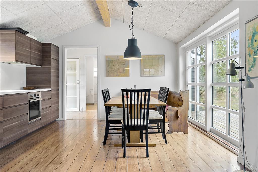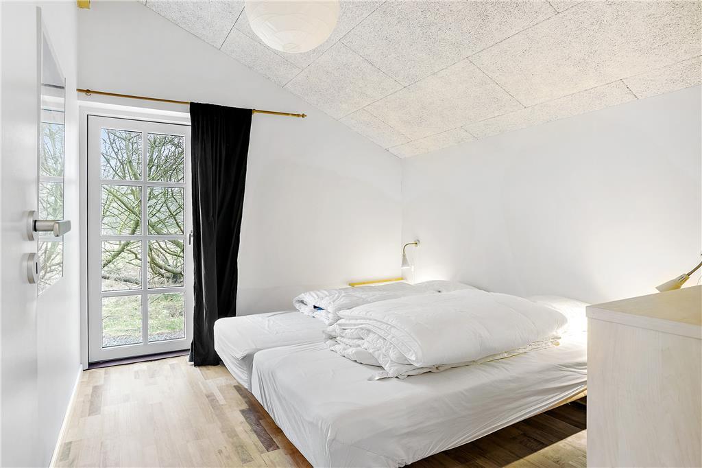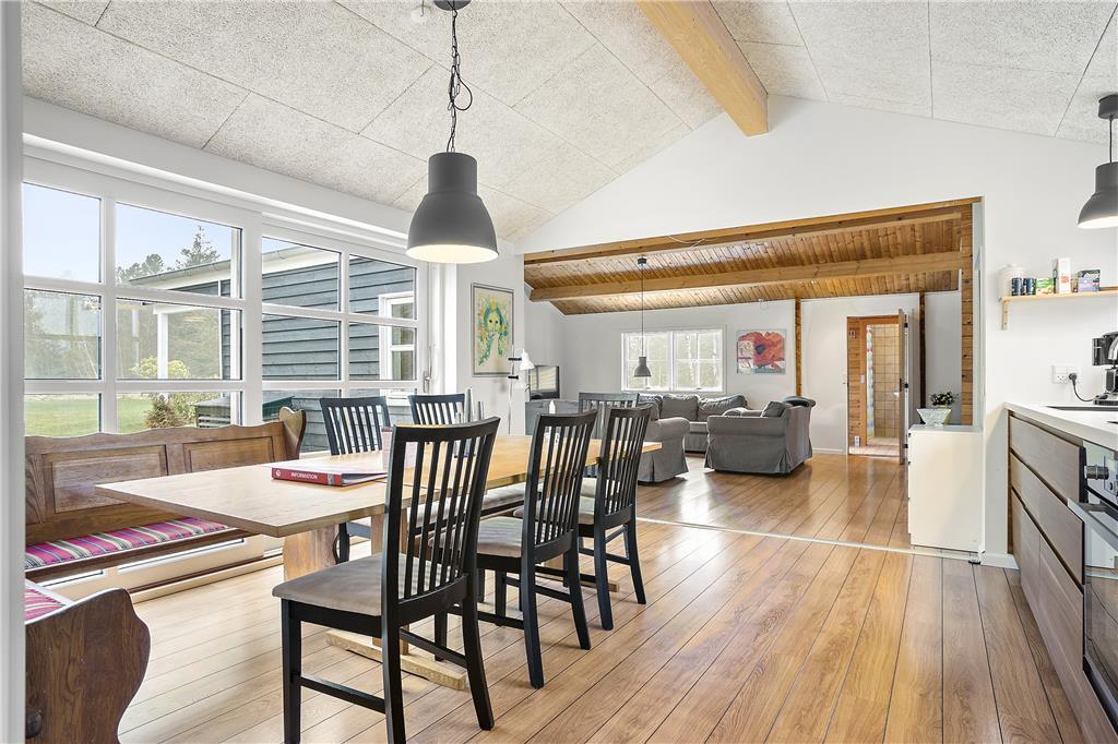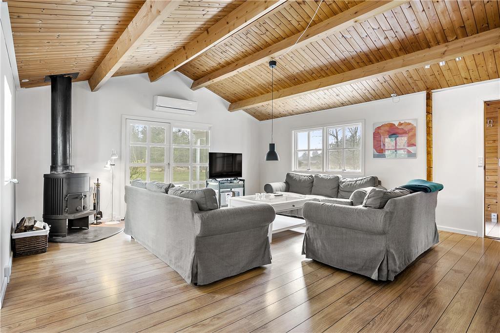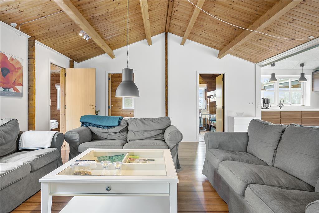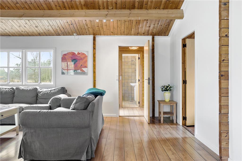 Inde i sommerhuset møder du en lys og venlig atmosfære, der straks får dig til at føle dig hjemme. Det åbne opholdsrum byder på store vinduer, der lukker masser af dagslys ind, og den praktiske planløsning gør det nemt at være sammen. Køkkenet er en del af stuen, hvilket skaber en hyggelig ramme for fælles madlavning og afslapning foran brændeovnen. Soveværelserne er indrettet med fokus på komfort, så du kan vågne udhvilet og klar til nye eventyr.