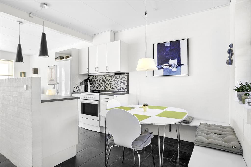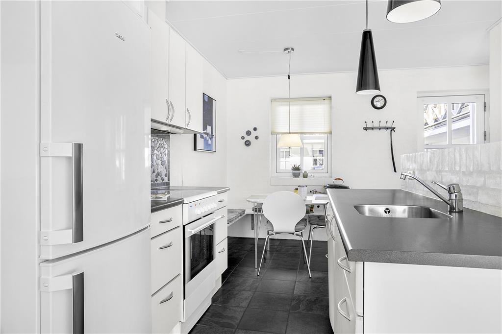Inde i lejligheden venter en lys og indbydende atmosfære, der straks får dig til at føle dig hjemme. Boligens to etager skaber en rar og rummelig fordeling, hvor stue og køkken smelter sammen i en praktisk og hyggelig enhed. Her er der plads til at samle familien over måltider og snakke om dagens oplevelser. Ovenpå finder du soveværelserne, der er skabt til afslapning og gode nætter, så du kan vågne veludhvilet og klar til nye eventyr. Uanset om du tager plads i sofaen med en god bog eller forbereder en kop kaffe i køkkenet, vil du mærke roen brede sig.