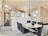 Indendørs bliver du mødt af en lys og varm atmosfære, der straks giver følelsen af at være på ferie. Sommerhuset er indrettet med fokus på hygge og samvær, så du kan nyde dagene med dine nærmeste uden at skulle bekymre dig om andet end at slappe af. I stuen er der god plads til at samles – måske til en brætspilsaften, en hyggelig film eller bare stille snak over en kop kaffe, mens du kan kigge ud på de grønne omgivelser. Køkkenet ligger i åben forbindelse med stuen, så samtalerne kan fortsætte, mens du forbereder et godt måltid. Med plads til seks personer er huset oplagt til både familieferien og en tur med vennerne, hvor nærvær og gode minder er i fokus.