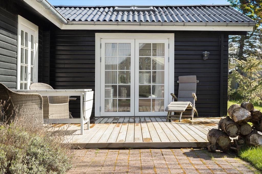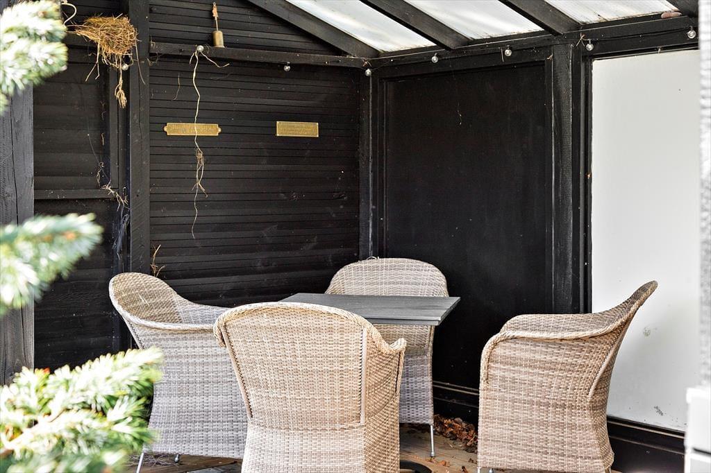 Udelivet nydes bedst på sommerhusets terrasse, hvor du kan starte dagen med en kop kaffe, mens solen står op over landskabet. Her kan du slappe af i behagelige havemøbler, lade børnene lege på grunden eller tilberede aftensmaden på grillen. De lune sommeraftener indbyder til hyggelige stunder under åben himmel, hvor lyden af havet i det fjerne skaber en rolig baggrundsmelodi.