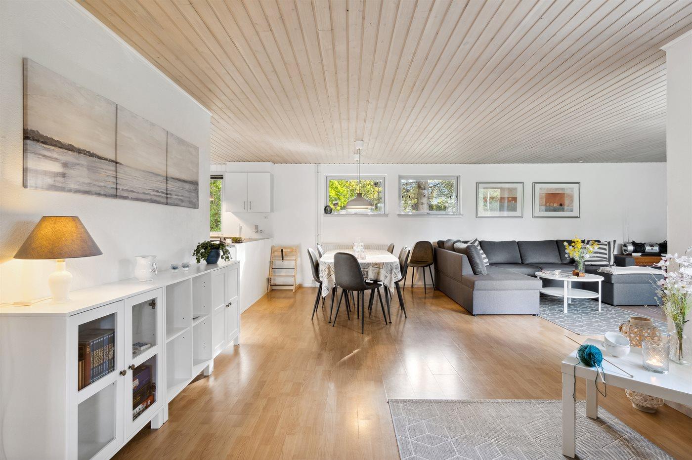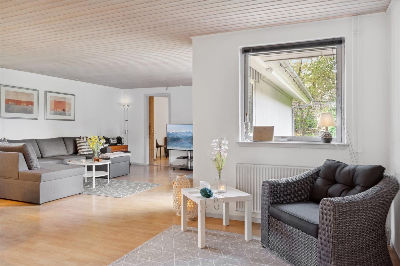 Dejligt, lyst hus som er egnet til familier med børn, da det ligger for enden af en lukket vej i rolige omgivelser uden meget trafik.