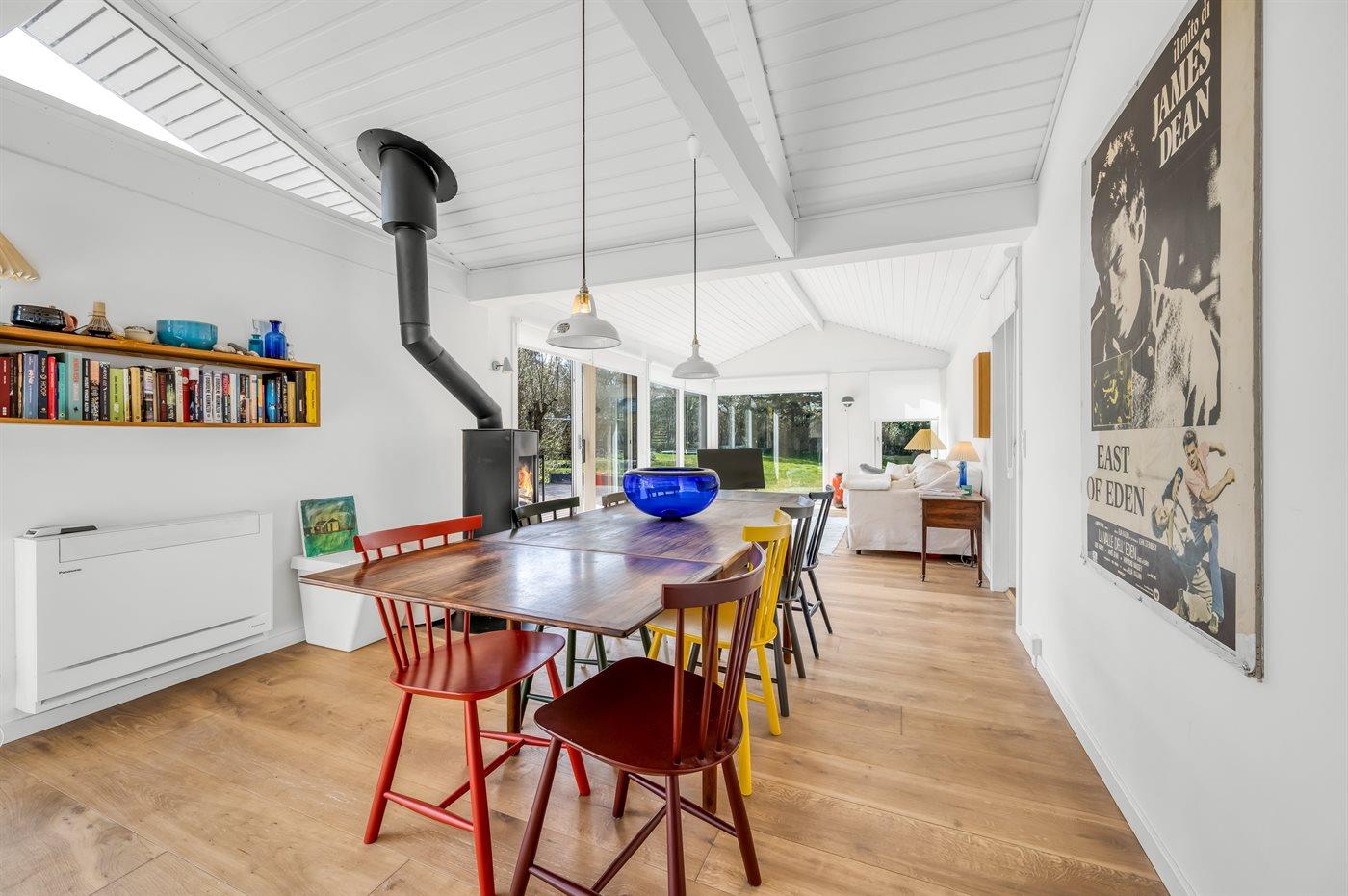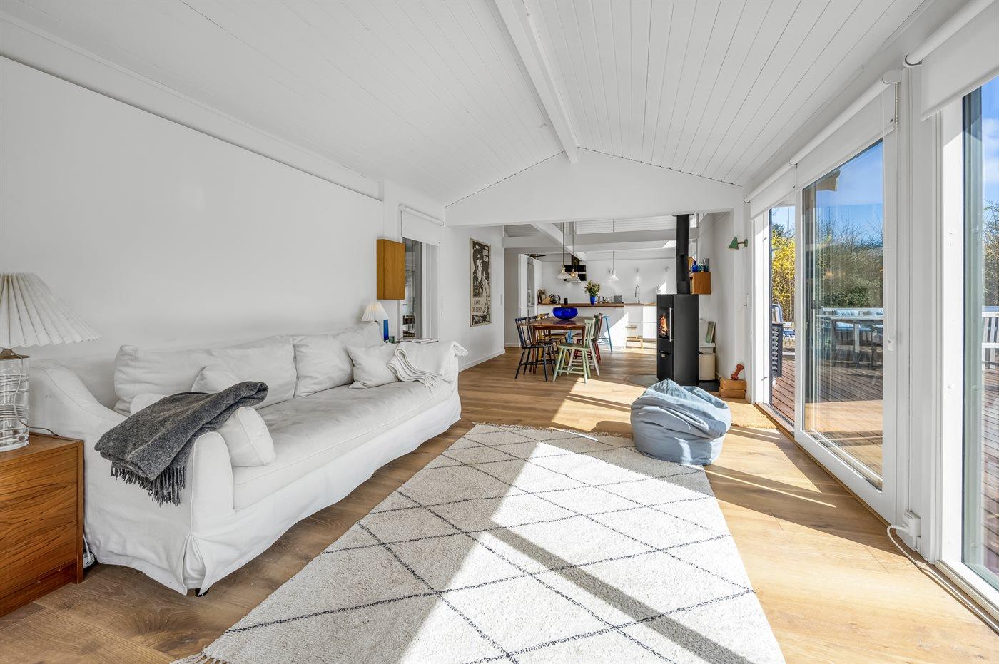 Dejligt sommerhus med plads til afslapning og hygge. Stort køkken-alrum med masser af lys og luft. Udsigt og adgang til haven – og den overdækkede terrasse. Tre soveværelser. Et dejligt badeværelse.