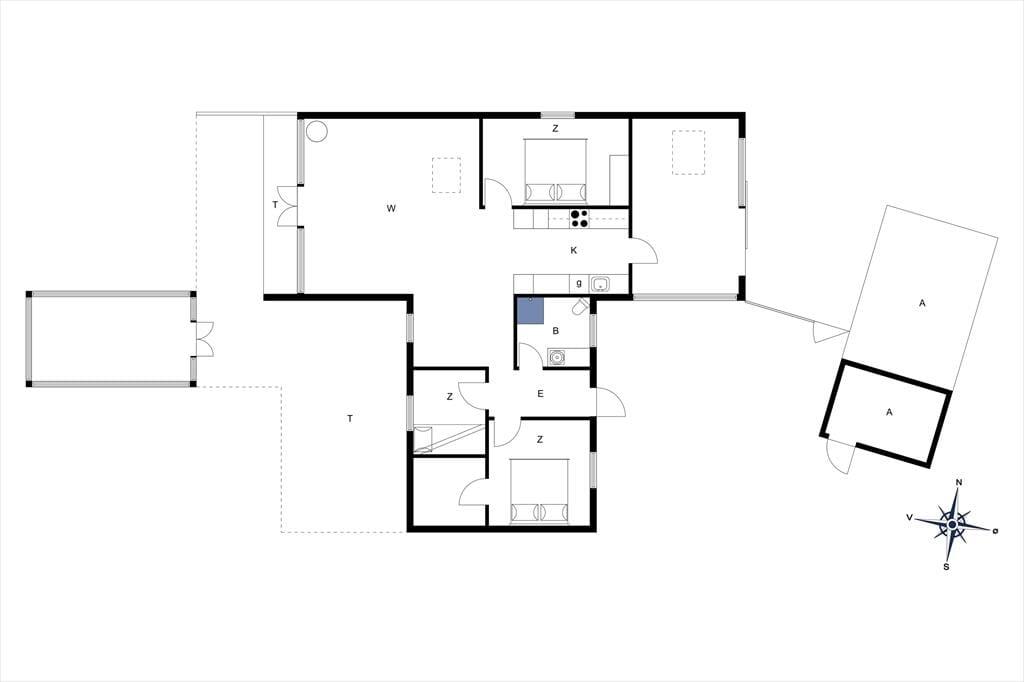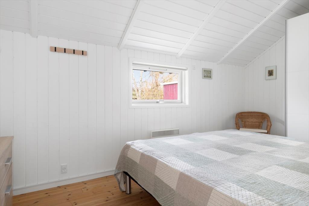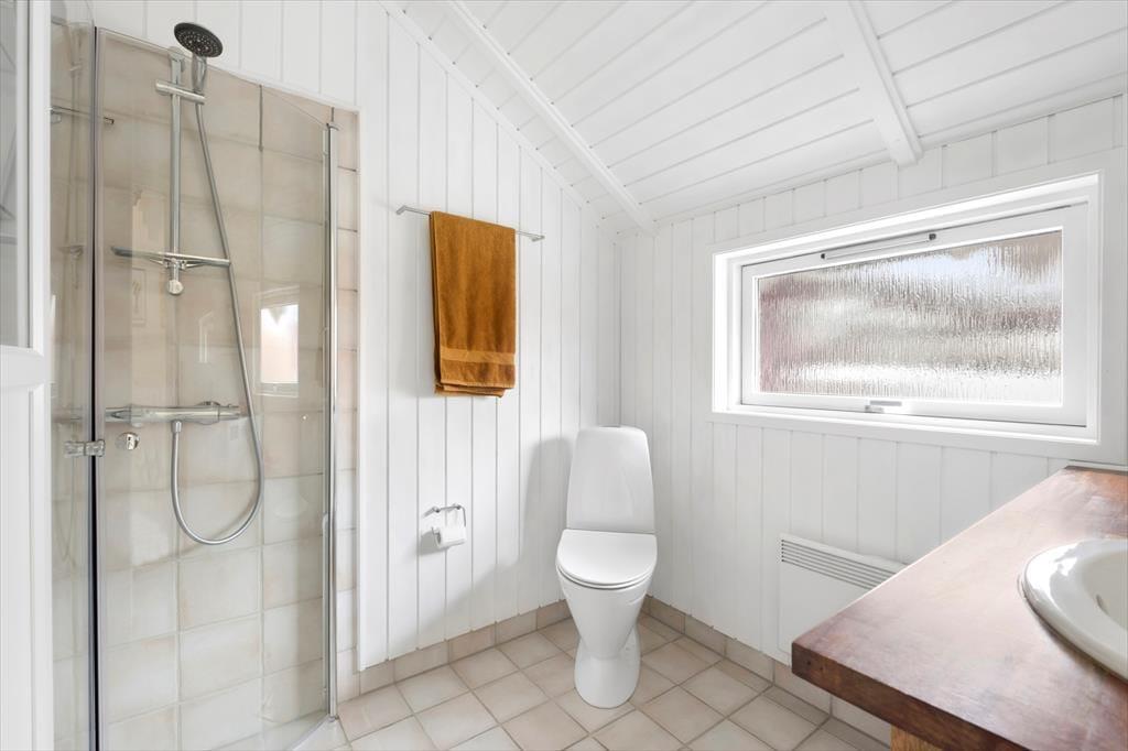 Dette rummelige og lyse sommerhus skaber en skøn ramme for en afslappende ferie tæt på naturen. Den store opholdsstue har loft til kip og store vinduespartier, der lukker lyset ind og giver en luftig atmosfære. Pejsen sørger for hyggelige aftener, hvor du kan slappe af med en god bog eller nyde en brætspilsaften i godt selskab. Køkkenet ligger i åben forbindelse med havestuen, hvor spisepladsen indbyder til hyggelige familiemiddage med udsigt til haven. Her kan du nyde morgenkaffen, mens dagens planer tager form, eller samle hele familien til en lækker middag efter en dag fyldt med oplevelser.