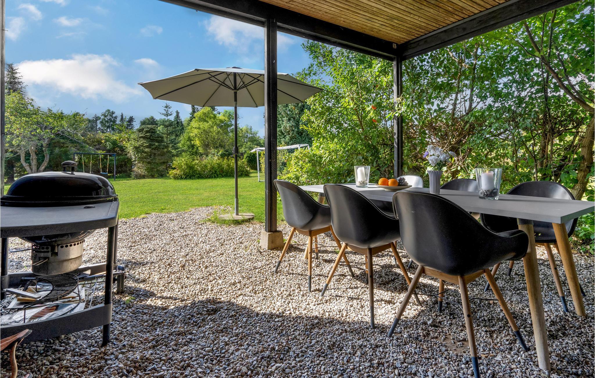 Huset ligger ugeneret på en lille gade i et roligt område. I den store, private have er der masser af legeområder med gynger og god plads til boldspil. På den overdækkede terasse kan I tilberede lækre feriemåltider på grillen.