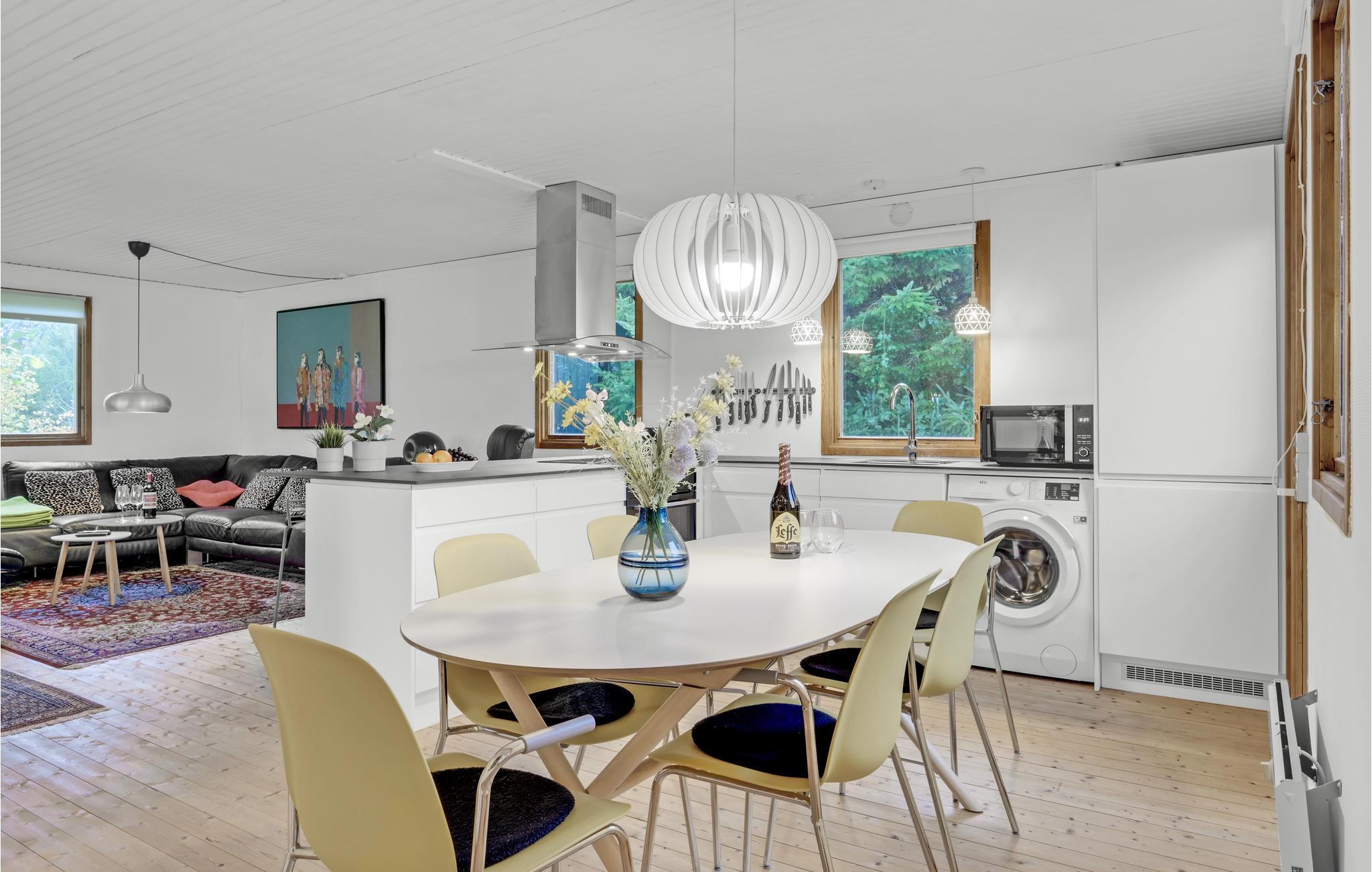 Velkommen til dette sommerhus, hvor I kan slappe vidunderligt af både inde og ude. Den skønne opholdsstue med åbent køkken er husets naturlige samlingspunkt og lægger op til masser af hyggestunder. Her kan I sætte jer med en god film, mens I flader ud i de komfortable møbler.