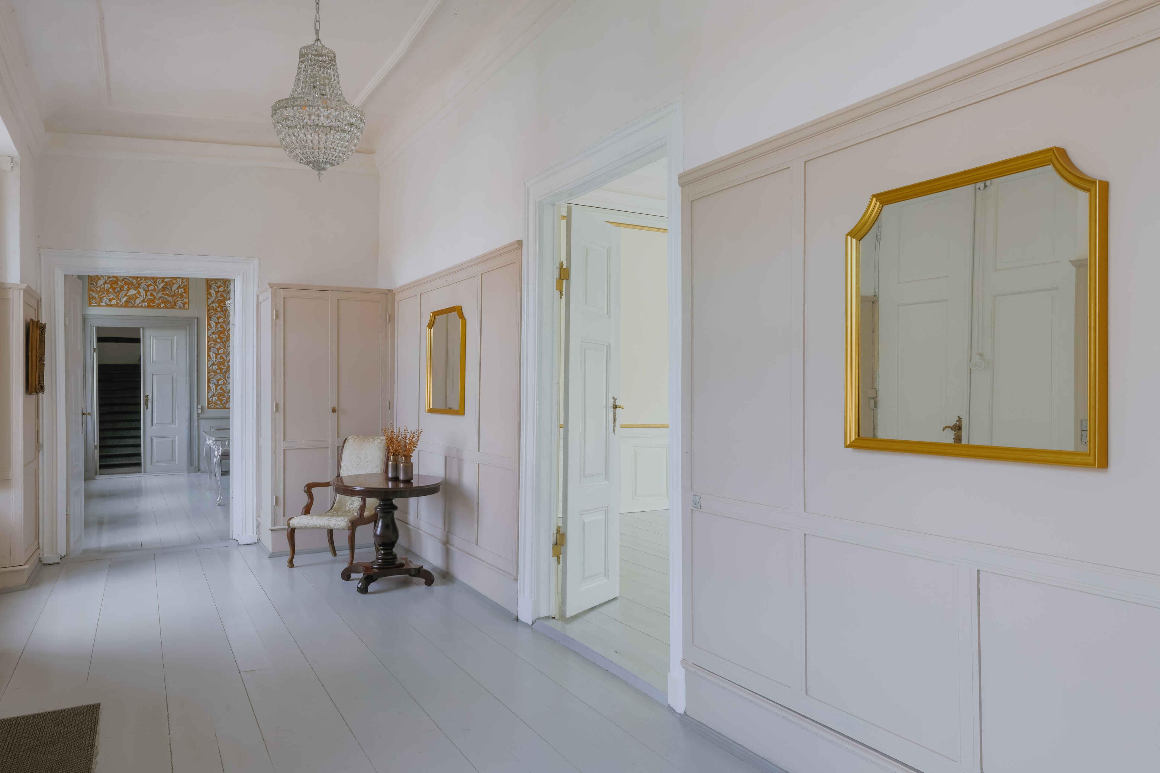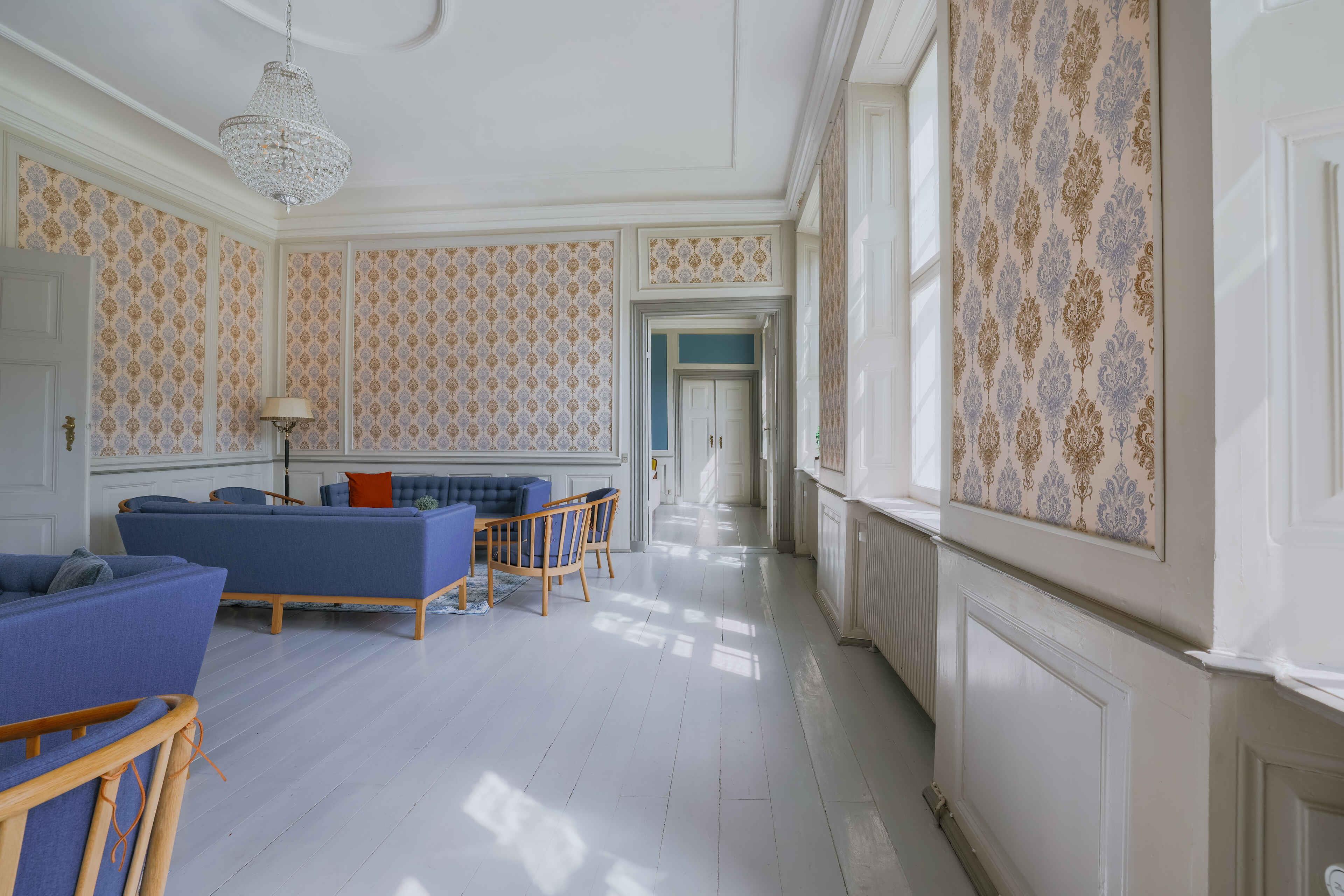 Hindemae er et historisk gods i stor skala, hvor den hvide hovedbygning fremstår gennemført renoveret med respekt for de oprindelige detaljer. De 1200 m² rummer 14 soveværelser, 4 badeværelser, 2 gæstetoiletter og flere stuer, der giver gæsterne god plads til samvær og ro. Boligen kan rumme 28 overnattende gæster og fungerer som et stærkt valg til ferier for flere familier, firmaophold og festlige weekender. Der kan arrangeres selskaber for op til 60 gæster, og et separat festlokale til 110 personer kan tillejes efter behov. Aktivitetsrummet i kælderen gør opholdet levende med bordfodbold, airhockey, bordtennis og rare opholdspladser. Udenfor breder den parklignende have sig med skov, eng, mose og å, hvor gæster kan gå ture og opleve godsets rolige naturmiljø. Området omkring godset giver stærke feriekvaliteter. De brede sandstrande ved Kerteminde og Nyborg tilbyder kystliv, havnemiljøer og trygt vand. Ullerslev by ligger tæt på med indkøb, og den korte vej til motorvejen gør ankomst og udflugter enkle. Odense ligger kun 17 km væk og giver adgang til kultur, byliv og familieoplevelser. Gæster kan besøge H.C. Andersens Hus, Brandts, Jernbanemuseet og Odense Zoo. En tur med Åfarten giver et fredeligt indblik i byen fra vandet, og gågaderne byder på butikker, caféer og restauranter. Den gamle bydel har vægterture hele sommeren. Helheden gør Hindemae til et sted, hvor historiske rammer, natur og god plads går op i en højere enhed. Det passer den gæst, der ønsker et ophold med format.
