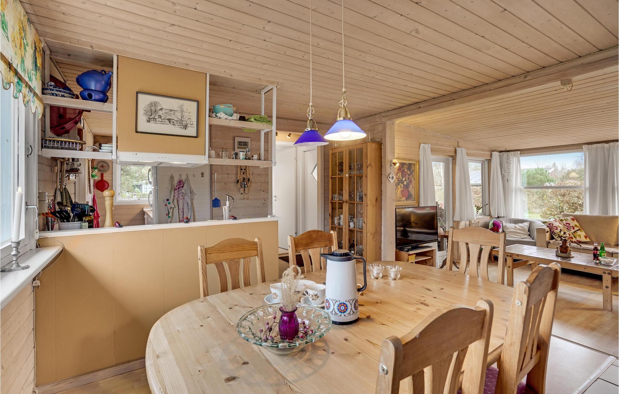 Er hygge og en hjemlig atmosfære vigtigt for jer? Så er I kommet til det rette sted i dette skønne feriehus! Træd indenfor og sænk skuldrene, her vil I straks føle jer hjemme. I kan nyde tiden her med jeres familie, glemme jeres hektiske hverdag og bare lægge fødderne op. Nyd jeres feriemåltider på den delvist overdækkede terrasse og se ud over de grønne omgivelser.