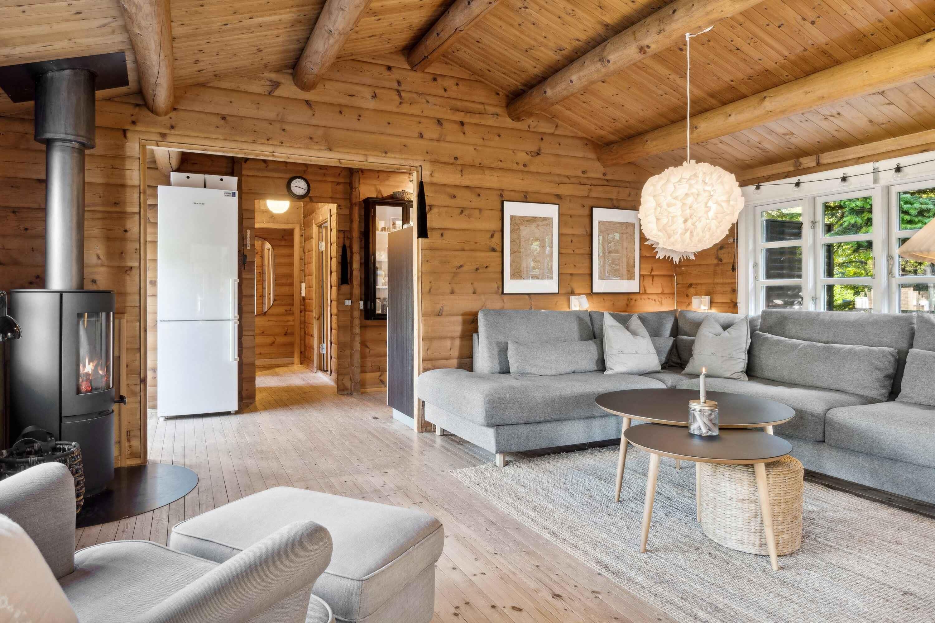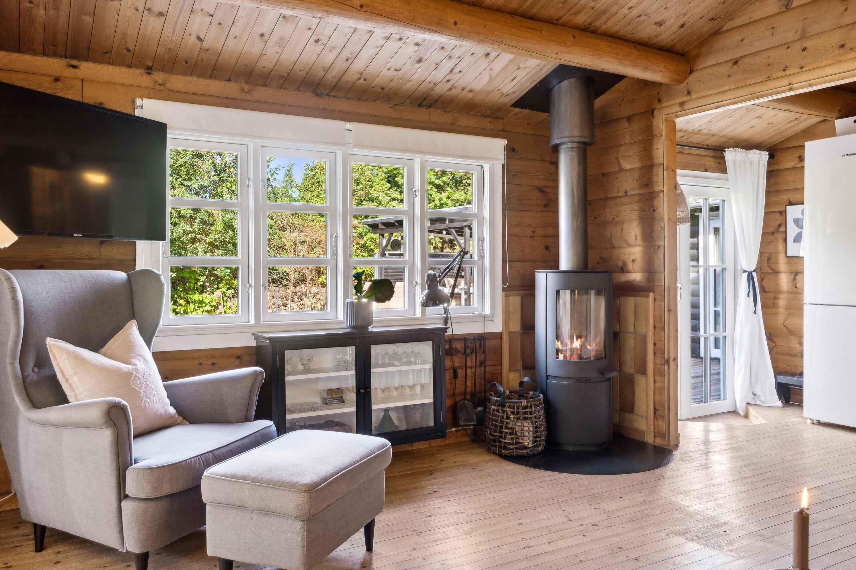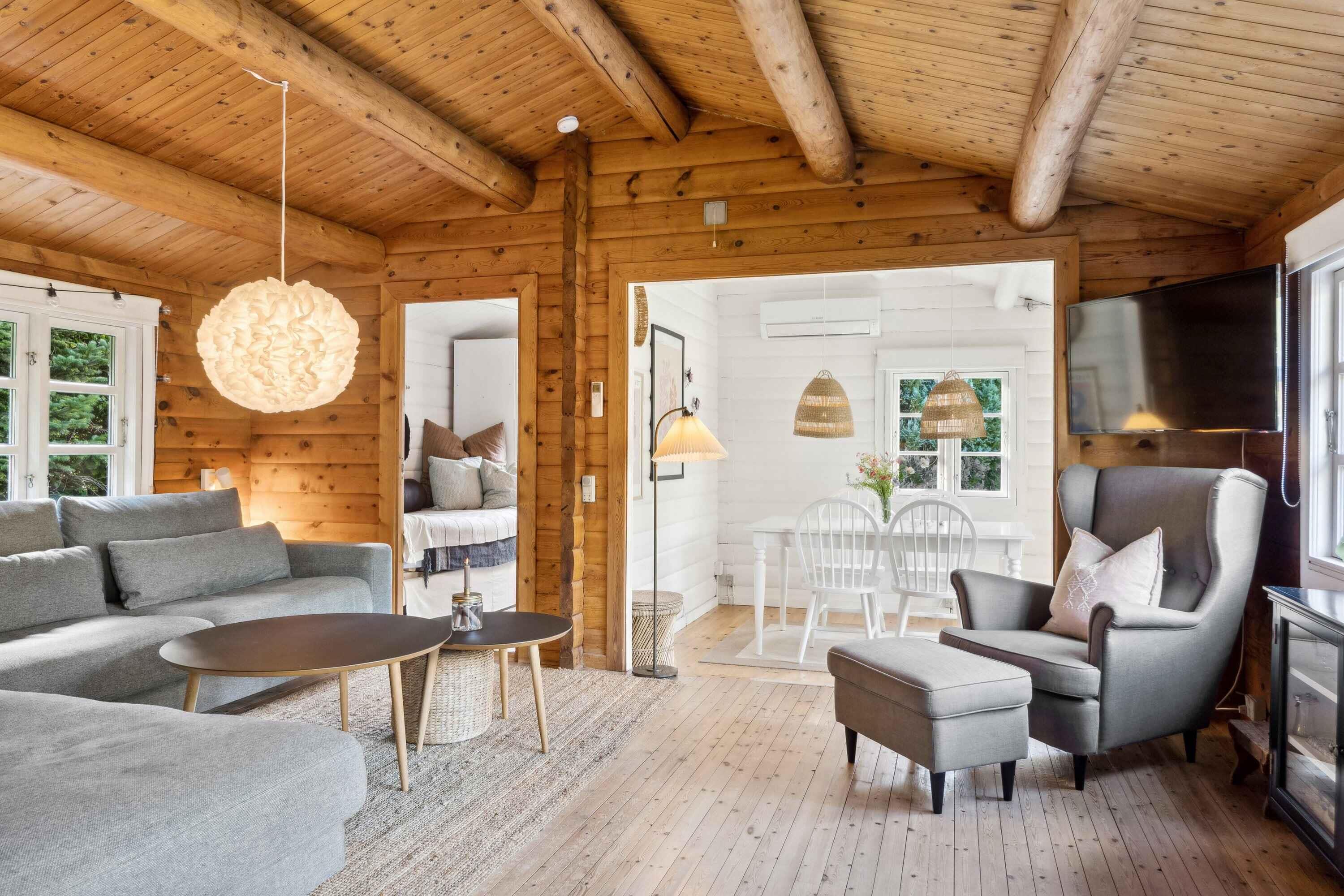 Charmerende bjælkehytte, tæt på havet. moderne faciliteter, smagfuld indretning, internet, varmepumpe, brændeovn, udebruser