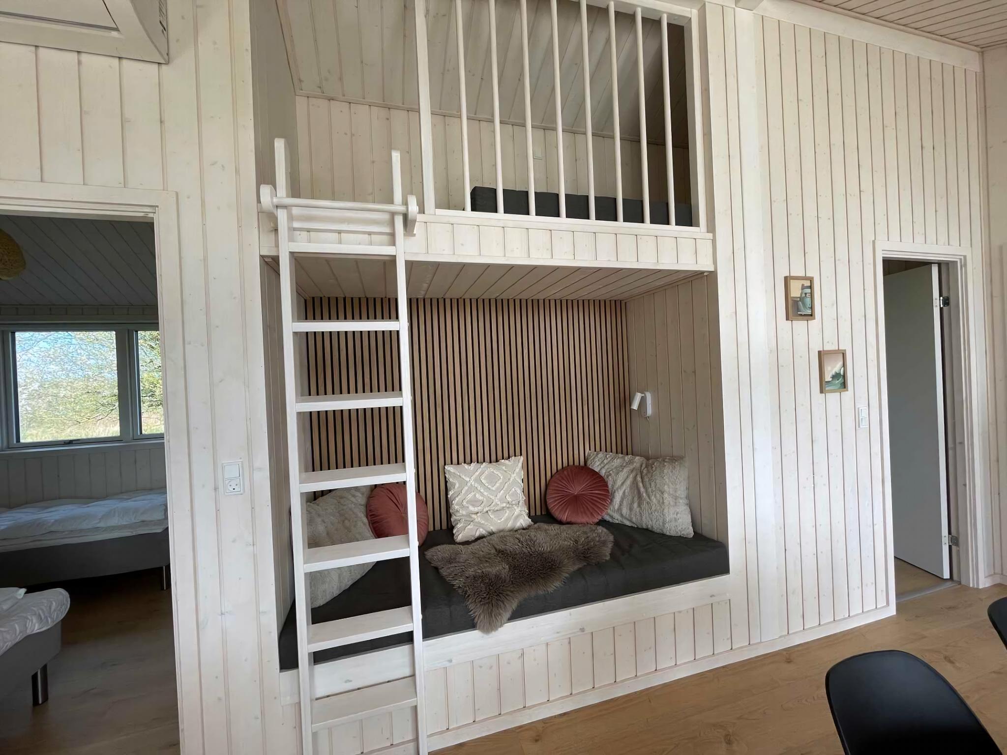 hyggeligt og lyst hus fra 2023, varmepumpe, internet, 2 ekstra sovepladser på hems og alkove, udgang fra stue/køkken til dejlig stor terrasse, stor grund med plads til leg, trampolin, fodboldmål, volley og badminton.