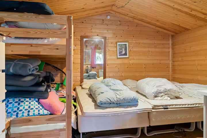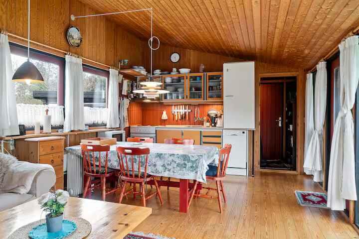 Her får du muligheden for at holde ferie i mormors sommerhus. Autentisk “sommerhusduft”, ro og glæden ved det simple liv. Tænk duften af pandekager, sand mellem tæerne og en hængekøje i skyggen. Kom og skab sommerminder for livet. Huset er 60 m2 med tre soveværelser og seks sovepladser. Planløsningen er enkel og funktionel, så alle får ro. Køkken og stue samler familien til spil, madlavning og snak efter stranden. 900 meter bringer dig til vandkanten. Udenfor venter haven, en stor overdækket terrasse med rødternet dug og et hyggeligt vildmarksbad til klare nætter. Hængekøjen lokker til lur. To små “hytter” giver teenagere frirum. Her er plads til Hygge – fra morgenkaffe til grill ved solnedgang. Du bor tæt på naturen. Lyt til fuglesangen fra morgenstunden, og spot rådyr i haven, når dagen falder på. Enkelheden gør godt: læs en bog, spil yatzy, bag pandekager – og lad ferietempoet finde sit eget rolige leje. Området er kendt for bred, børnevenlig sandstrand med klitter og lavt vand. Her er gode cykelstier, strandpromenade med is, caféer og minigolf, samt aktiviteter som kite- og windsurfing. Naturstier fører til Bøtø Nor og skov, hvor du kan møde græssende heste og rigt fugleliv. Badebroer, strandlege og solnedgange i klitterne. Udflugter er lette: Marielyst Torv byder på markeder og små butikker, Gedser Odde giver store horisonter og stenstrande, og Nykøbing Falster har museum, zoo og hyggelige gader. Golf, gokart og legeparker ligger i nærheden. Alt sammen inden for overskuelig afstand fra huset. Caféer, røgeri og lokale gårdbutikker giver smag.