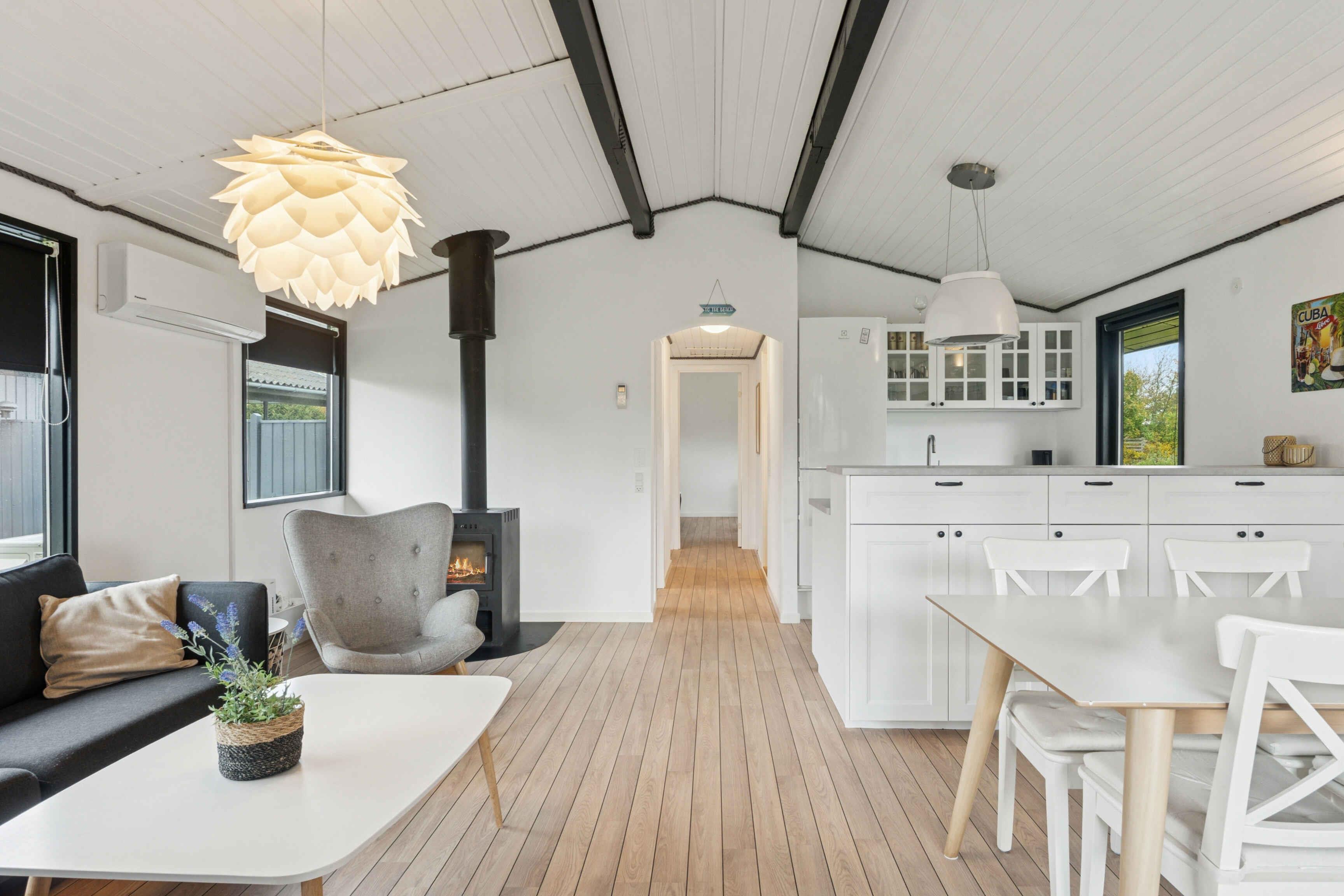Dette nyrenoverede sommerhus på 77 m² er indrettet til en afslappet ferie for op til seks personer. Her får I en funktionel ramme med plads til både samvær og ro, uanset om ferien er aktiv eller stille. Boligen rummer tre soveværelser med i alt seks sovepladser. I det største soveværelse er der et sammenhængende legerum, som gør huset særligt velegnet til familier med børn. Her kan de mindste lege, mens de voksne slapper af i nærheden. Køkken og opholdsrum er samlet, så hverdagen glider let. Her er brændeovn til kølige aftener og varmepumpe, som sikrer et behageligt indeklima året rundt. Internet giver mulighed for både streaming og hjemmearbejde, hvis det bliver nødvendigt. Huset ligger i rolige, grønne omgivelser, hvor naturen er en del af ferien. Grunden indbyder til udeliv, leg og afslapning, og området omkring huset er præget af fred og plads. Her er det let at koble af og finde feriens tempo. Området byder på gode oplevelser for både børn og voksne. Den børnevenlige strand ligger cirka 1000 meter væk og nås nemt til fods eller på cykel. Her er lavt vand, god plads og mulighed for lange dage med badning, sandslotte og gåture langs kysten. Nærområdet er kendt for sin varierede natur med skov, åbne landskaber og stier, der egner sig til både cykling og vandreture. Samtidig er der kort afstand til lokale oplevelser, spisesteder og attraktioner, som giver ferien ekstra indhold uden lange køreture. Dette sommerhus er et oplagt valg for jer, der ønsker en velindrettet feriebolig i naturskønne omgivelser, tæt på strand og oplevelser. Her er rammerne sat for en ferie med nærvær, ro og gode minder. Ved kortere ophold end en uge kontakt os gerne.