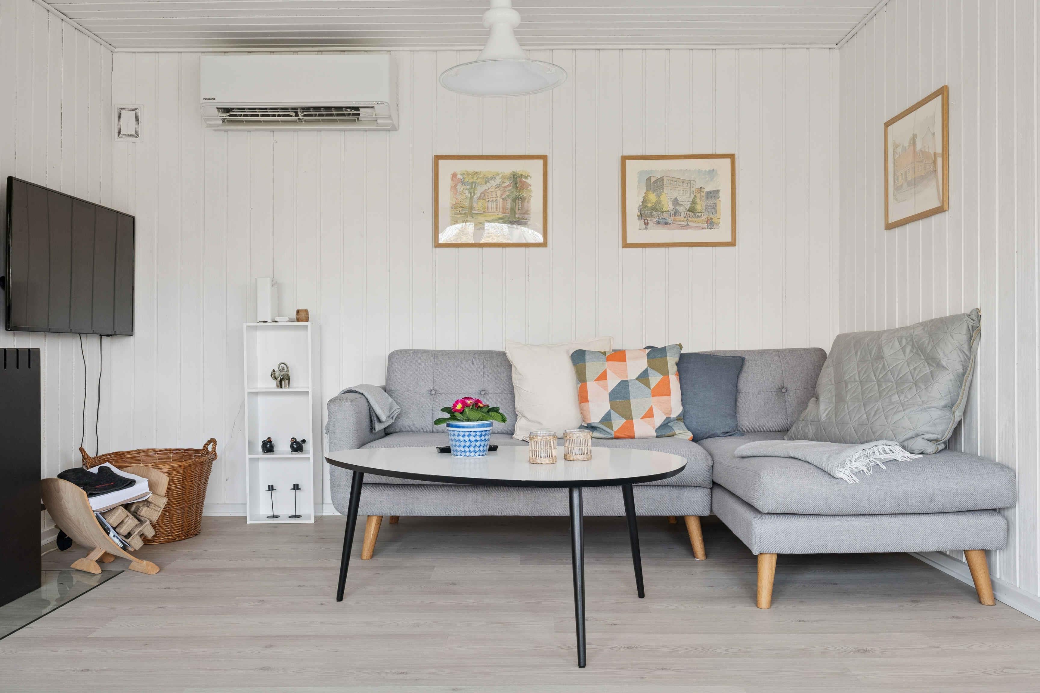 Lyst sommerhus med solrig terrasse, bålsted og tæt på børnevenlig strand i Væggerløse.