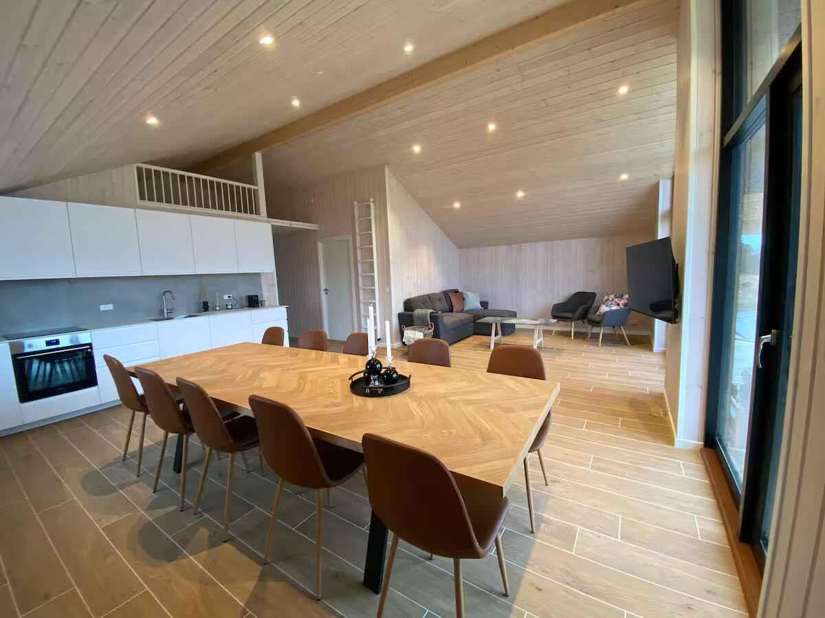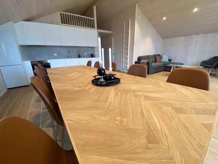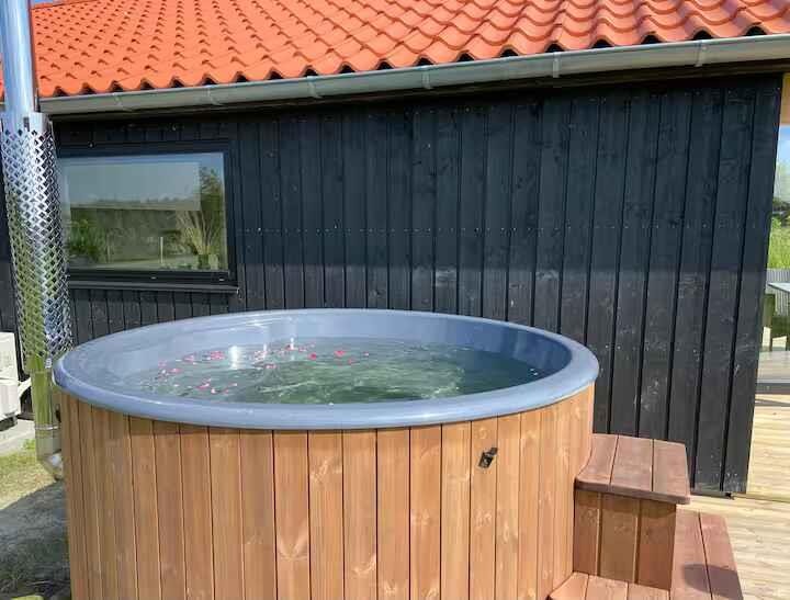 Dette sommerhus fra 2024 har plads til op til ti personer og rummer fire separate soveværelser og en hems. Boligen er 112 m² og helårsisoleret, så her er behageligt hele året. Det store opholdsrum kombinerer stue, spiseplads og køkken i ét åbent og funktionelt rum. Huset er lyst og moderne indrettet og har internet og varmepumpe. Her er god plads til fælles madlavning, spilaftener og afslapning – både for én stor familie eller to, der rejser sammen. Den store terrasse er en naturlig forlængelse af opholdsrummet og indbyder til udeliv. Udendørs venter et luksusvildmarksbad på hele 1400 liter. Her kan op til seks personer nyde varme bade under åben himmel, både sommer og vinter. Området omkring huset er roligt og overskueligt – oplagt til både afslapning og leg. Stranden ligger omkring 1300 meter væk. Her er lavt vand, brede sandstrande og klitter, hvor man kan finde læ. Perfekt til badeture, solskin, picnics og gåture. Stranden er også populær blandt windsurfere og kajakroere, og udsigten er åben mod horisonten. Området omkring Marielyst er et klassisk ferieområde med alt, hvad man har brug for i gå- og cykelafstand. Her findes minigolf, gokart, golfbane, bowling, escape room, cykeludlejning, restauranter og butikker. Om sommeren er der liv på torvet og mange små aktiviteter for børn. Natur, hav og oplevelser ligger lige i nærheden. Tag en tur til Bøtø-skoven eller se fugle i naturreservatet. Besøg lokale gårdbutikker, spis is på torvet eller find et roligt sted i skoven. Her er muligheder for både ro og aktivitet, alt efter humør. Den største handelsby på Falster ligger kun 15 km fra sommerhuset med butikker, aktiviteter samt naturområder. Dette er et sommerhus for jer, der ønsker moderne komfort og god plads – både inde og ude. Huset egner sig til familier eller hyggelig ferie blandt venner, der gerne vil være tæt på strand, by og natur. Fester er ikke tilladt.