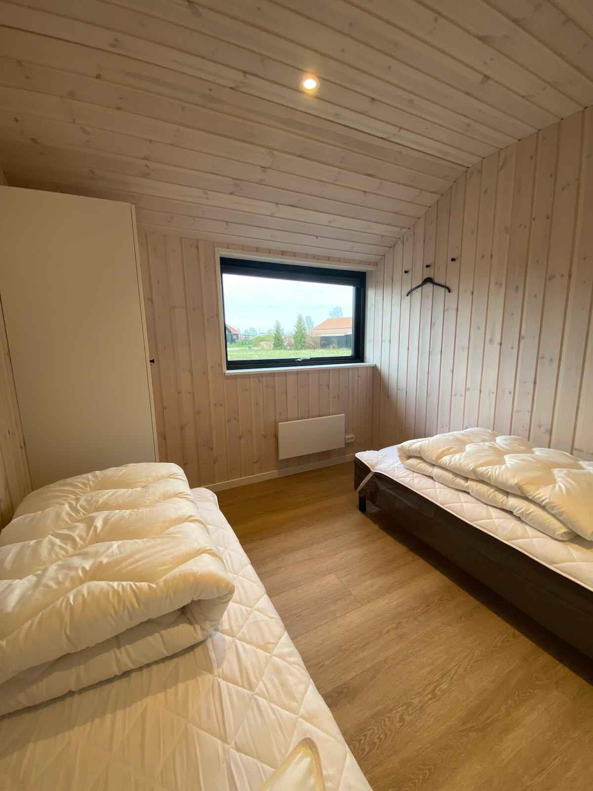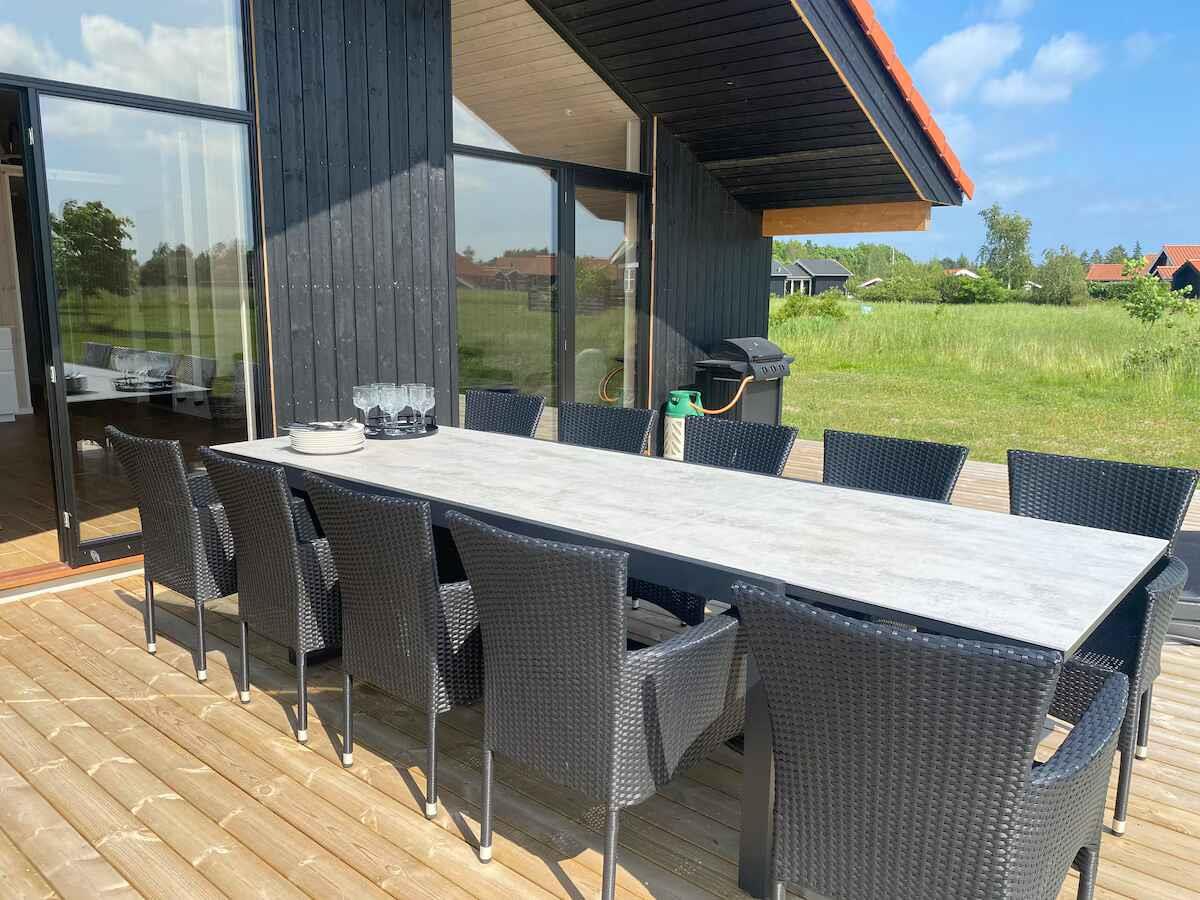 Moderne sommerhus fra 2024 med spa, stor terrasse og plads til 10 personer tæt på strand og Marielyst.