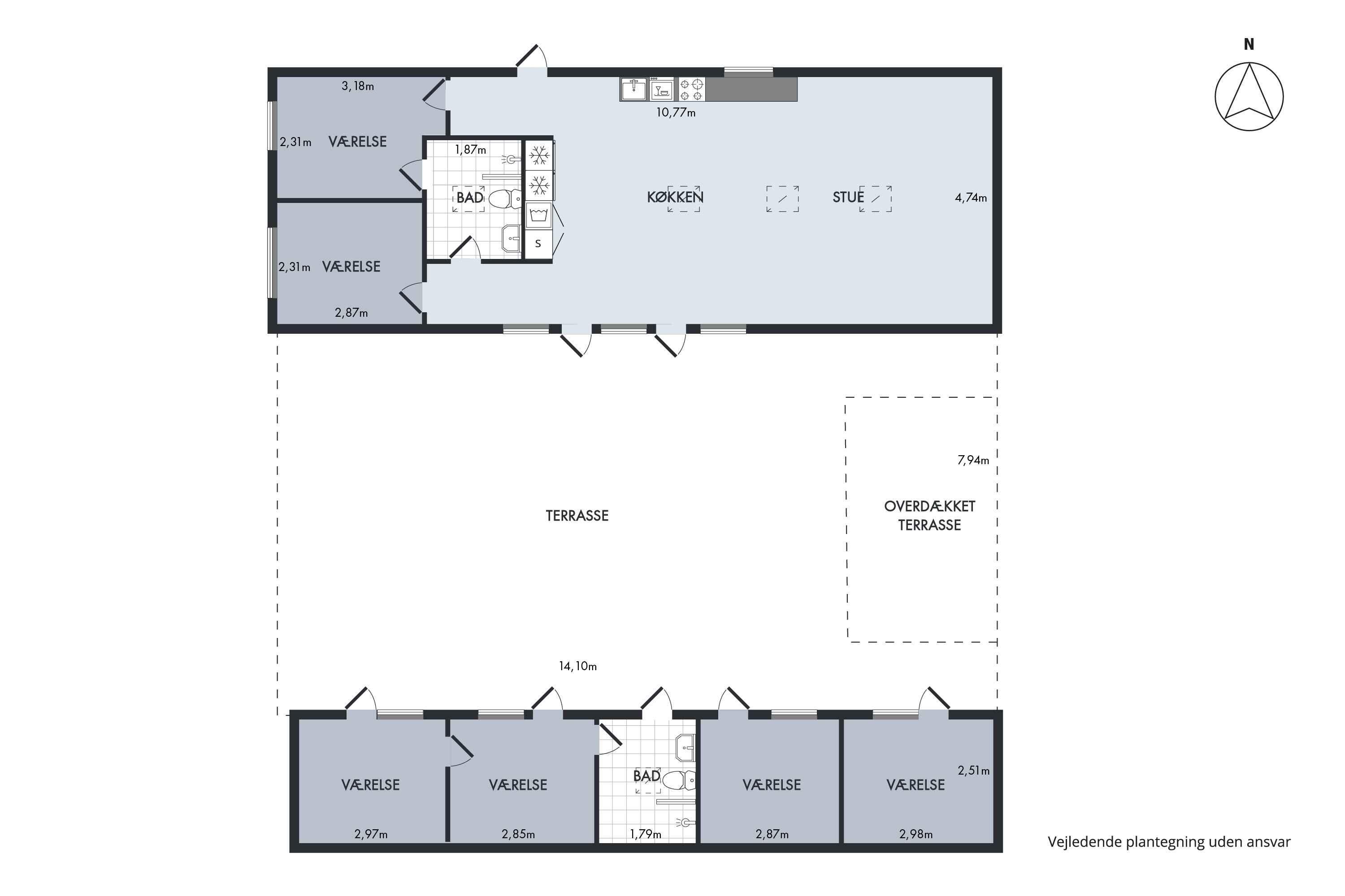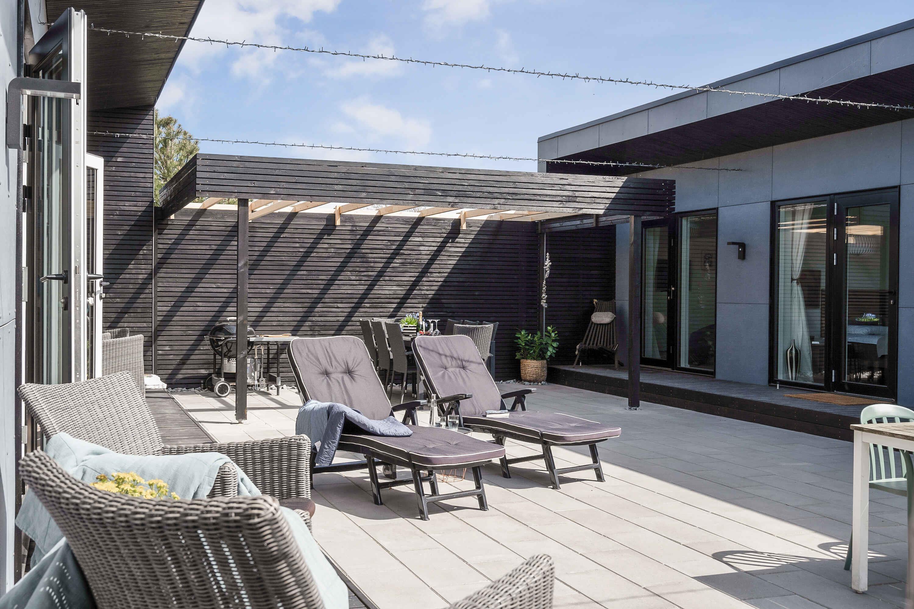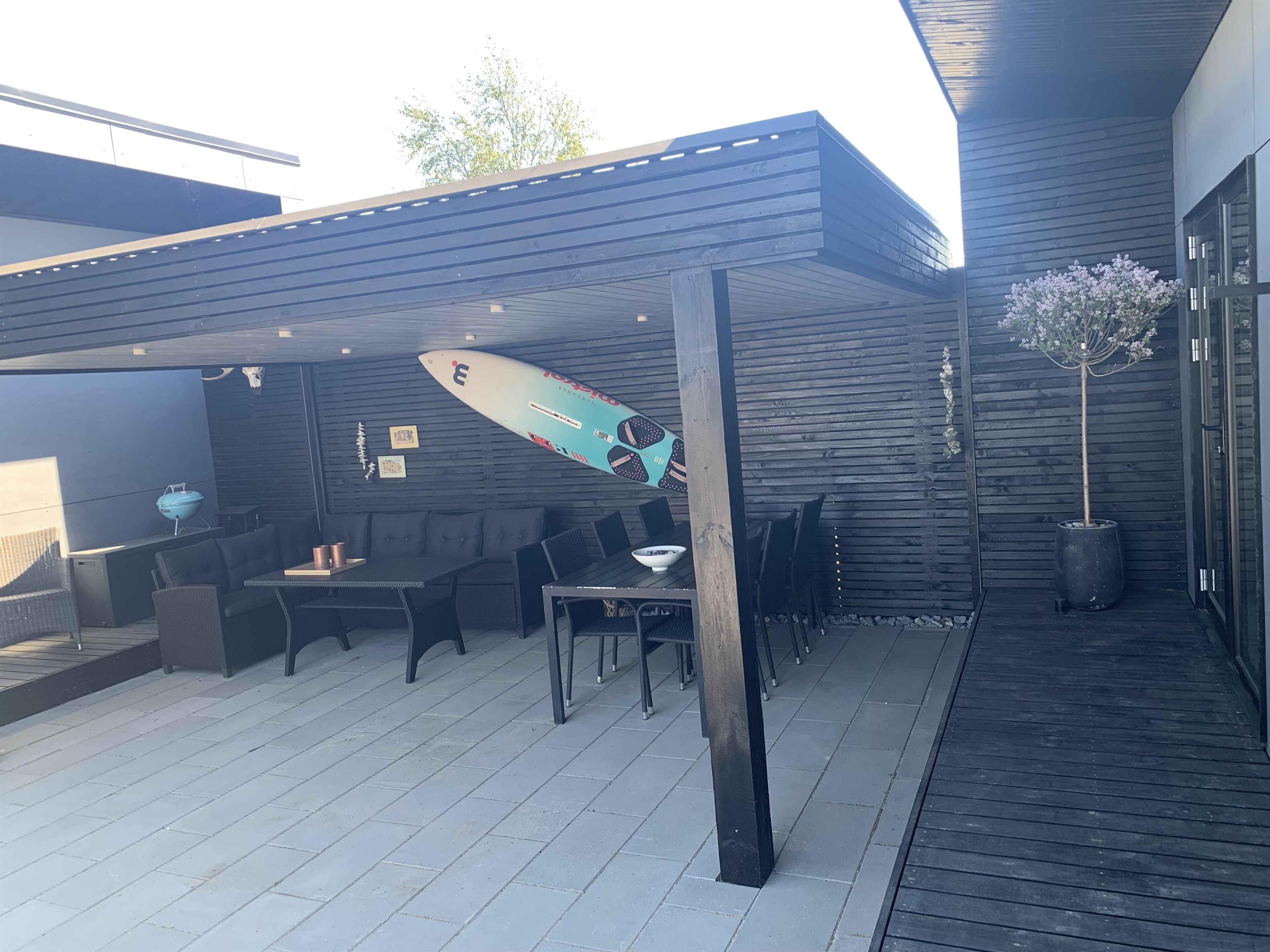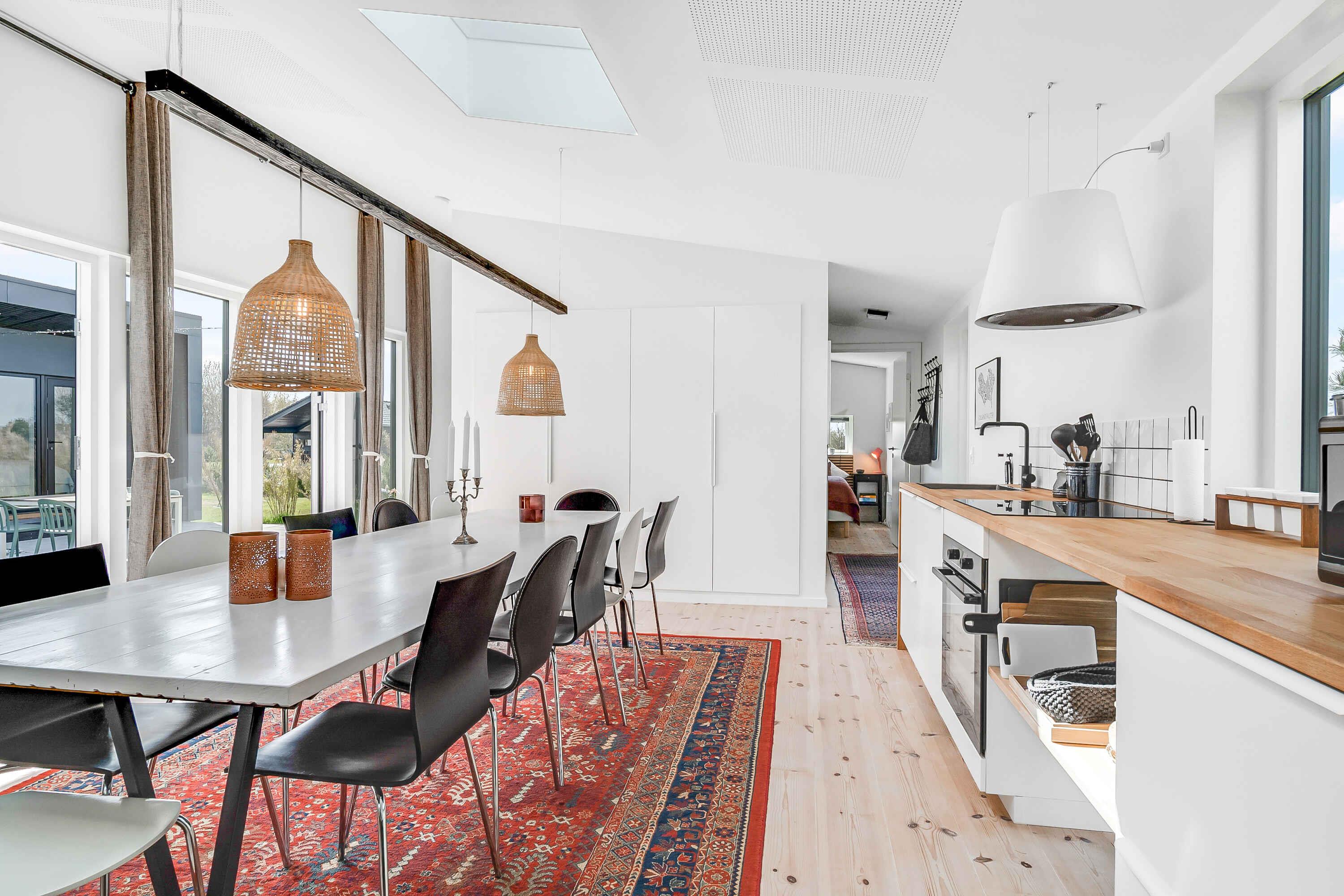 Hold ferie i dette sommerhus i særklasse bygget i fine materialer og i et tidsløst design. Huset er opført i 2022 og er opdelt i 2 seperate bygninger delt med en atriumgård, så I kan lukke af for den ene del, hvis dette er behovet. I den ene ende af den 100m2 store atriumgård, er der en lækker overbygning på ca 20m2, hvor skygge og læ kan nydes. Atriumgården kan lukket helt af. Ejendommen rummer samlet set 118m2 som fordeles over det 75m2 store hovedhus og den tilhørende bygning på 43m2. Hovedhuset rummer et stort og skønt køkkenalrum med køkkenafdeling, stue samt spiseområde, hvor der er plads til hele familien eller vennerne. Her venter jer en stor sofagruppe, fladskærmstv og brændeovn, hvor hyggen kan finde sted i aftentimerne. Hertil er der et flot spisebord parat til feriens måltider samt et lyst og funktionelt køkken. I køkkenalrummet er der ovenlysvinduer, som giver et fantastisk naturligt lysindfald med den gode loftshøjde. Derudover befinder det ene af de to badeværelser sig også i hovedhuset. Dette badeværelse har seperat brus med et flot flisevalg, gulvvarme samt ovenlysvindue med automatisk åbne/lukke funktion. Der er 2 soveværelser i hovedhuset med 4 sengepladser. Den anden bygning råder over 4 soveværelser, der hver især har deres egen indgang. De rummer alle 2 sengepladser og mulighed for opbevaring. I denne del er der også et badeværelse med de samme funktioner som det i hovedhuset. Der er indvendig dør mellem de 2 af de 4 værelser samt til badeværelse, således at dette kan rumme en familie. Dørene kan dog låses så de også fungere som enkelt rum. I alt er der 6 soveværelser med hhv. 4 dobbeltsenge, 4 enkeltsenge. I alt plads til 12 personer. Fra huset er der kun en lille gåtur til vandet, som er beliggende 900 m fra huset, mens der kun er 700 m til indkøb. Der er tilgang til en fin petanque og volley/batminton bane. Marielyst, der gennem mere end 100 år har været den foretrukne badeby på den danske østkyst har en sydlandsk stemning med udeservering på caféer og restauranter. I højsæsonen bugner torvet af lokale kunsthåndværkere med malerier, keramik og pileflet, der skaber en fortryllende sommerstemning. Marielyst tilbyder et bredt udvalg af butikker med tøj, vin og specialvarer samt et væld af aktiviteter såsom golf, bowling, minigolf, segway, gokart og paintball. Sommerhuset ligger heller ikke langt Nykøbing Falster, der er en stemningsfuld by med en smuk beliggenhed ned til Guldborgsund. Byen har et tæt net af gågader med mange butikker og cafeer. Her finder du også Middelaldercentret, Guldborgsund Zoo og flere museer. Vigtig information: Boligen udlejes ikke til store selskaber og fester (kan forespørges ved ejer). Husdyr må ikke være i møblerne eller sengene og hundens efterladenskaber SKAL samles op. Obs, udlejes ikke til erhversmæssigt brug.