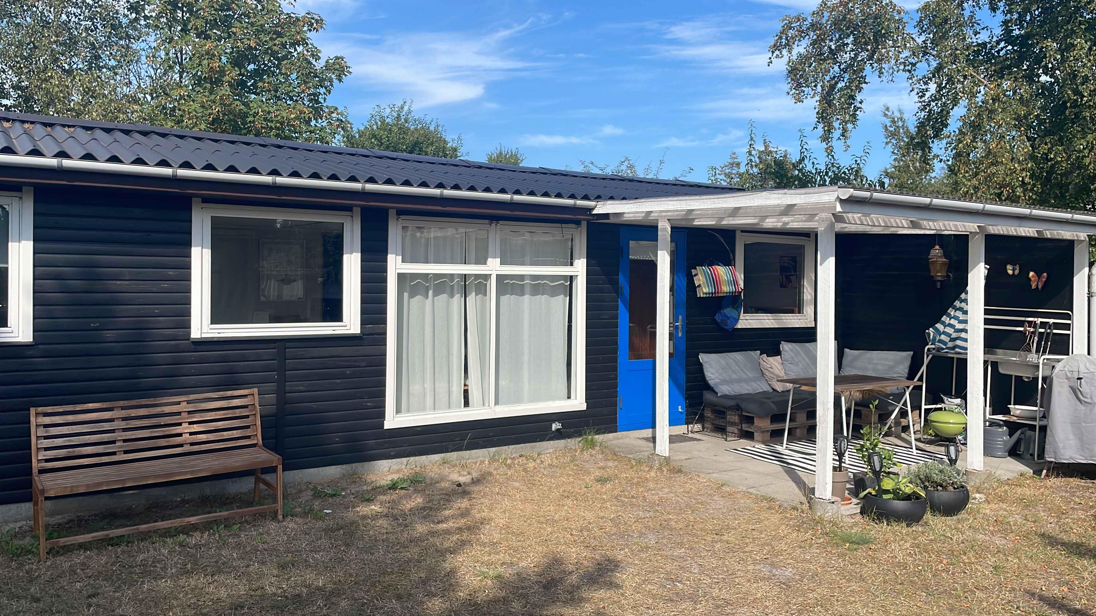 Hyggeligt sommerhus i Marielyst med to værelser, tæt på strand og børnevenlig have med legehus.