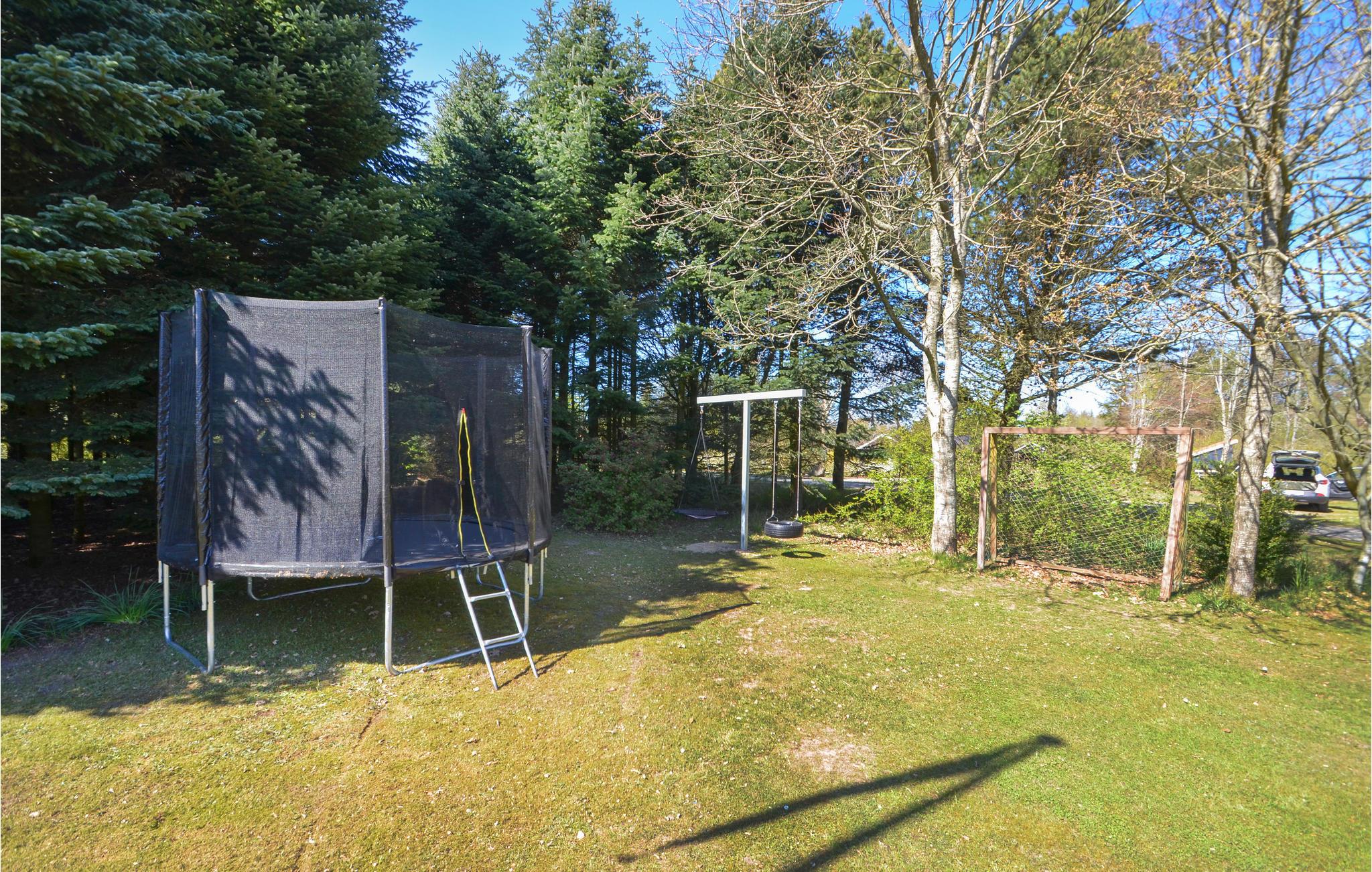 Huset er omgivet af flere terrasser, så her er der altid et sted, hvor der er enten skygge eller sol. Samtidig er der også tænkt på udendørsaktiviteter. På den store græsplæne omkring huset er der rig mulighed for boldspil og andre sjove aktiviteter. Huset har endvidere egen bålplads, hvor I kan hygge jer med at bage snobrød, ligesom også er lavet et lille område med træstammer, hvor børn og barnelige sjæle kan lege gemmeleg og have det sjovt.