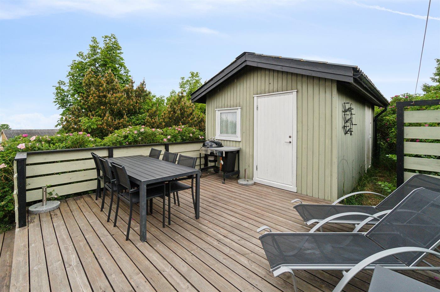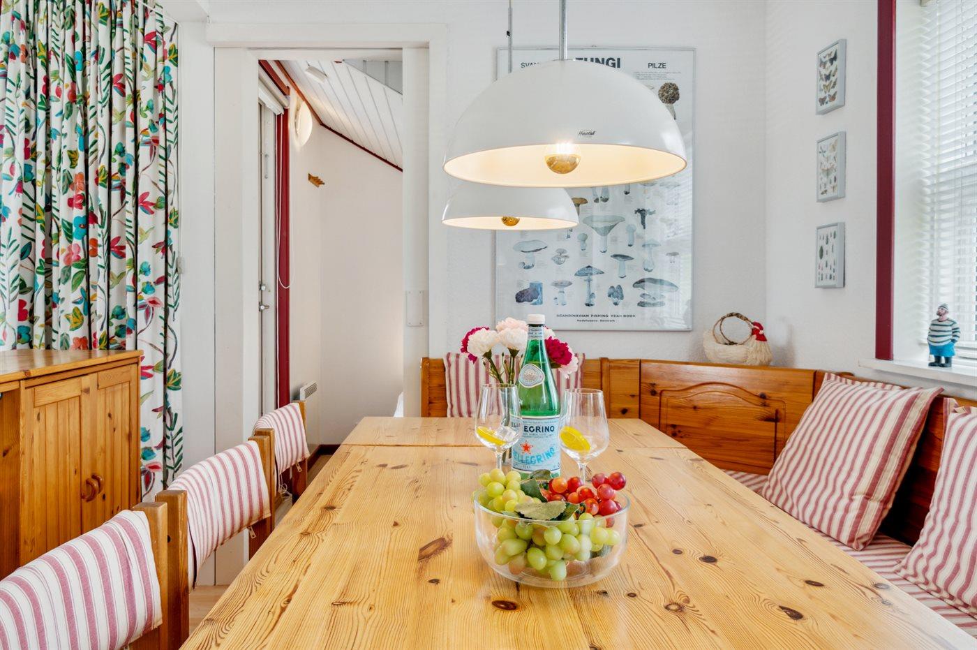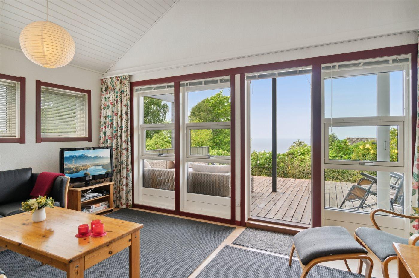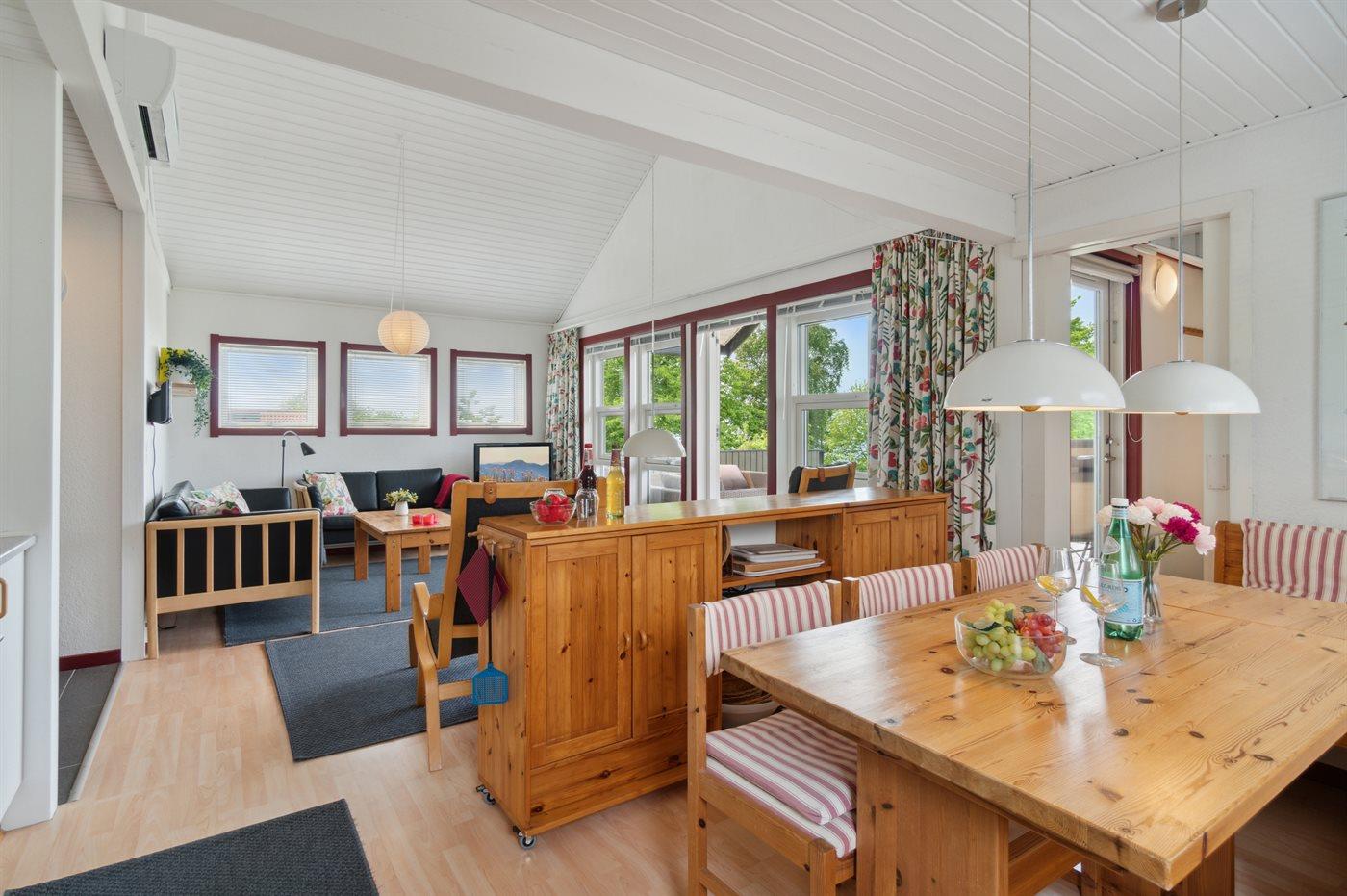 Et særdeles velholdt feriehus beliggende på en skrånende grund med flot udsigt over Østersøen. Fra såvel den overdækkede terrasse samt fra den hævede solterrasse kan udsigten til solnedgangen nydes i fulde drag. Fra stuens store vinduesparti kan I endvidere nyde udsigten mod havet og den lille by Vang, som er kendt for sin hyggelige og rolige havn og sin gamle vandmølle fra begyndelsen af det forrige århundrede, som nu er smukt restaureret.