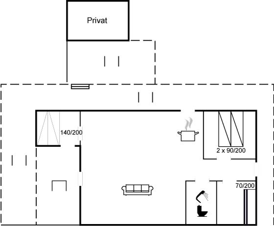 Der er i alt 3 soveværelser. Sovepladserne fordeler sig på: 4 sovepladser i dobbeltsenge. 2 sovepladser i køjeseng.