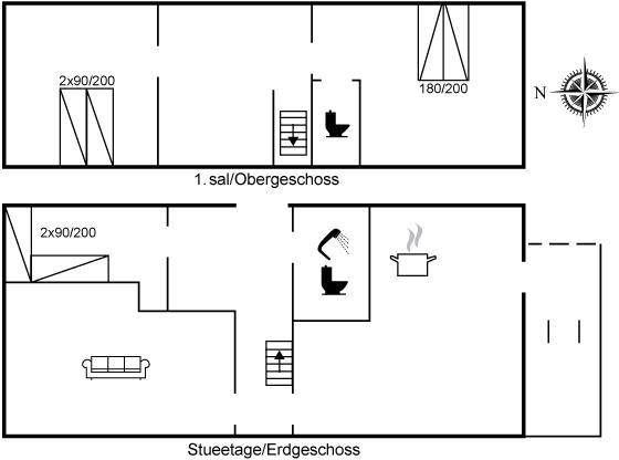 Der er i alt 3 soveværelser. Sovepladserne fordeler sig på: 4 sovepladser i dobbeltsenge. 2 sovepladser i enkeltsenge.