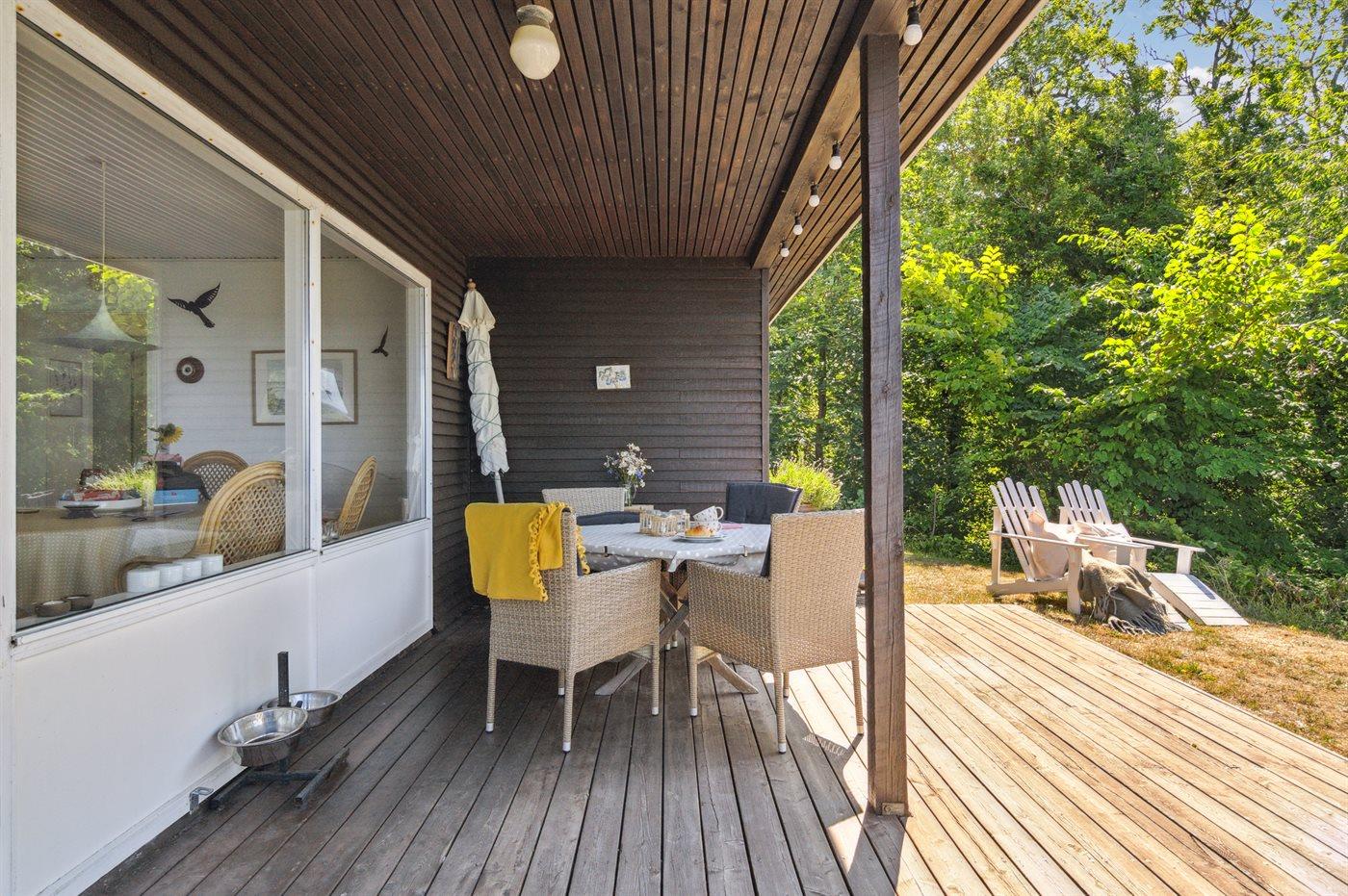 Hyggeligt sommerhus med havudsigt og overdækket terrasse ved Vang på Bornholm.