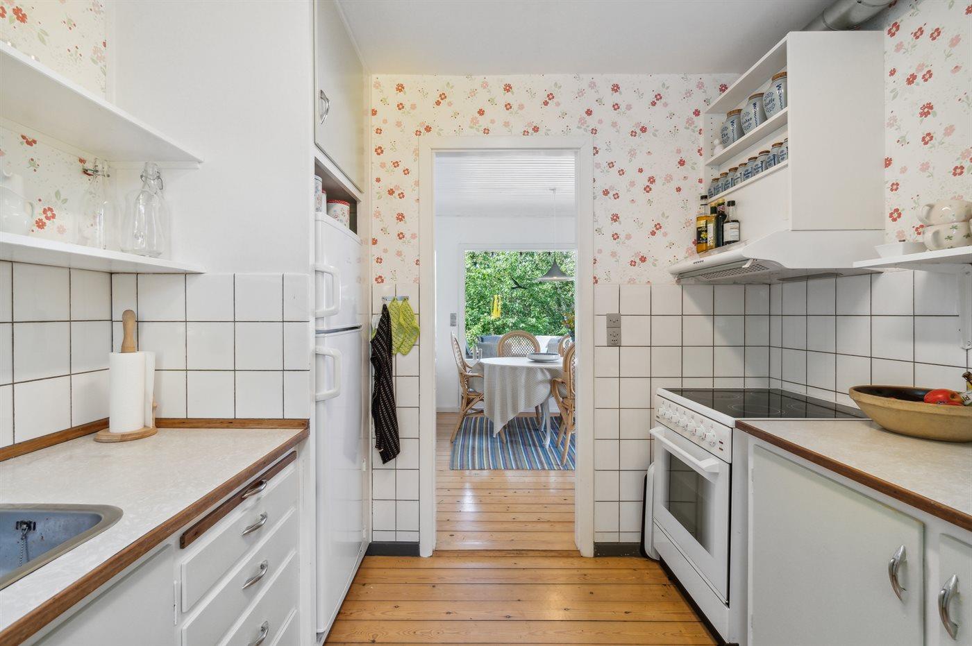 Køkkenet er udstyret med 1 køleskab. Der er 4 keramiske kogeplader, varmluftovn samt opvaskemaskine.
